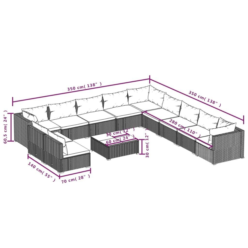 Sodo baldų komplektas, su pagalvėlėmis, 12 dalių, juodas Sintetinė vytelė