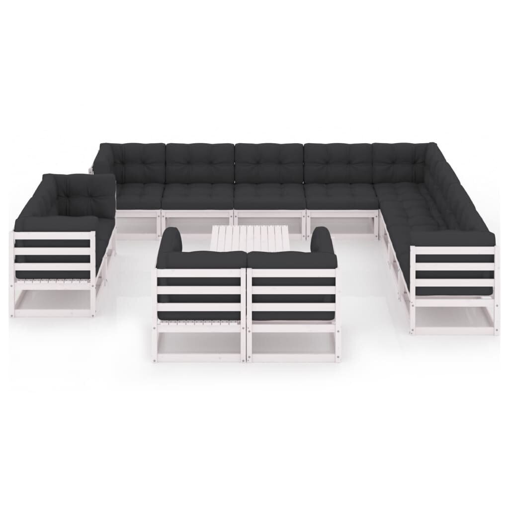 Sodo baldų komplektas 13 dalių iš pušies medžio su pagalvėlėmis