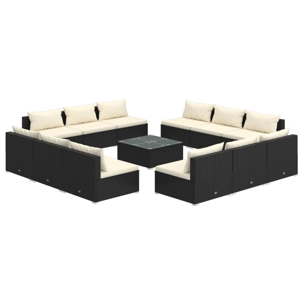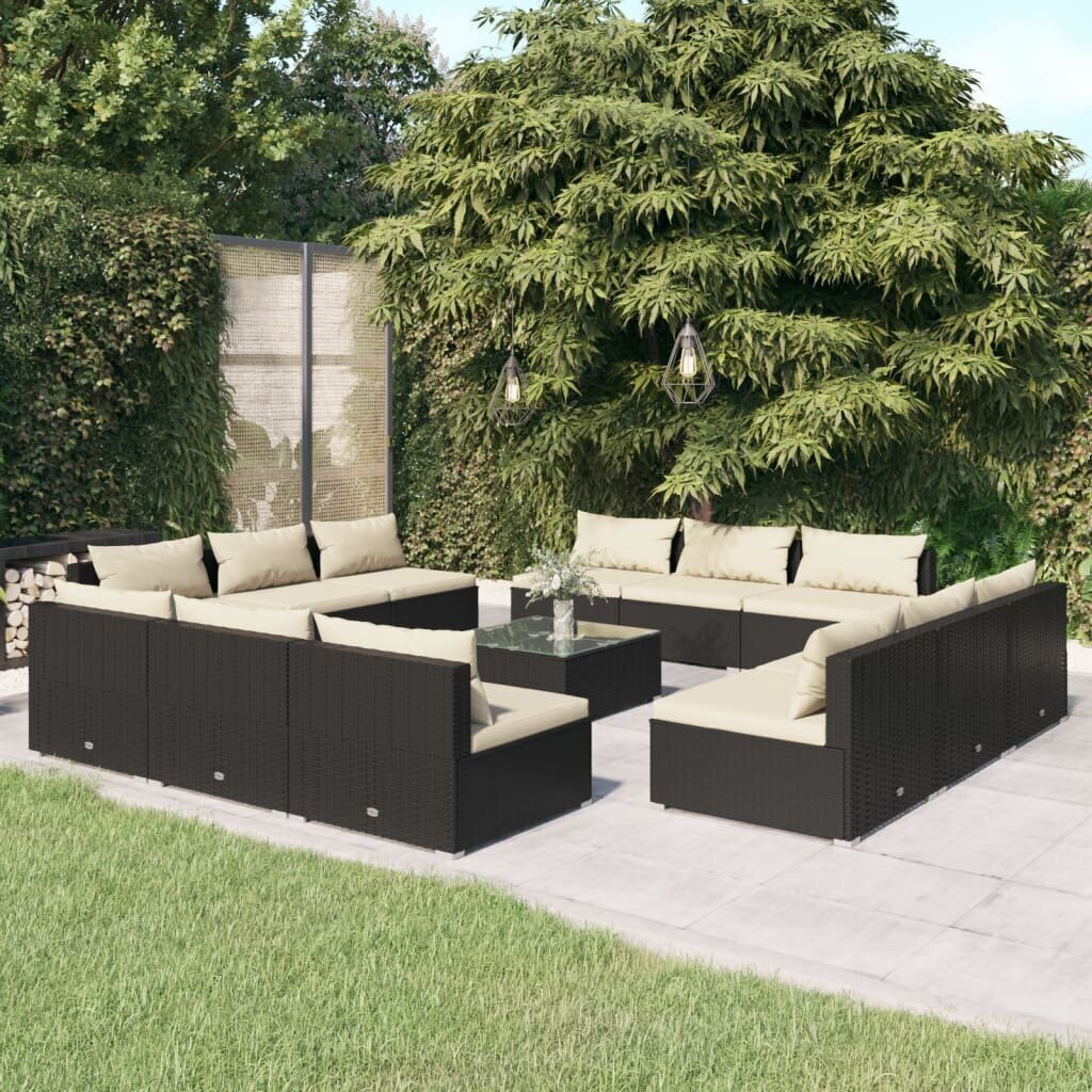 Sodo baldų komplektas, su pagalvėlėmis, 13 dalių, juodas Sintetinė vytelė