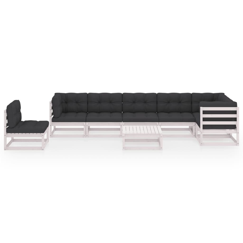 Sodo baldų komplektas su pagalvėlėmis 8 dalių baltas | Belsilt