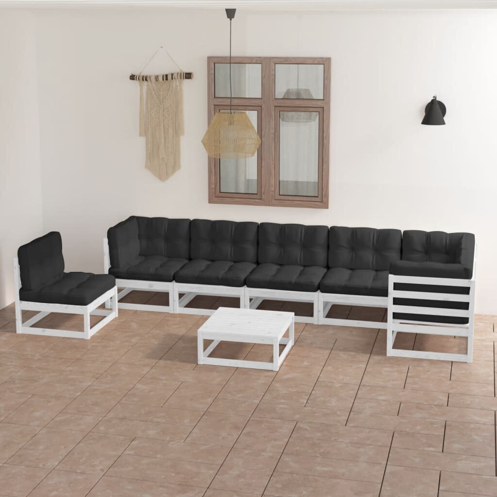 Sodo baldų komplektas su pagalvėlėmis, 8 dalių, baltas Medžio masyvas