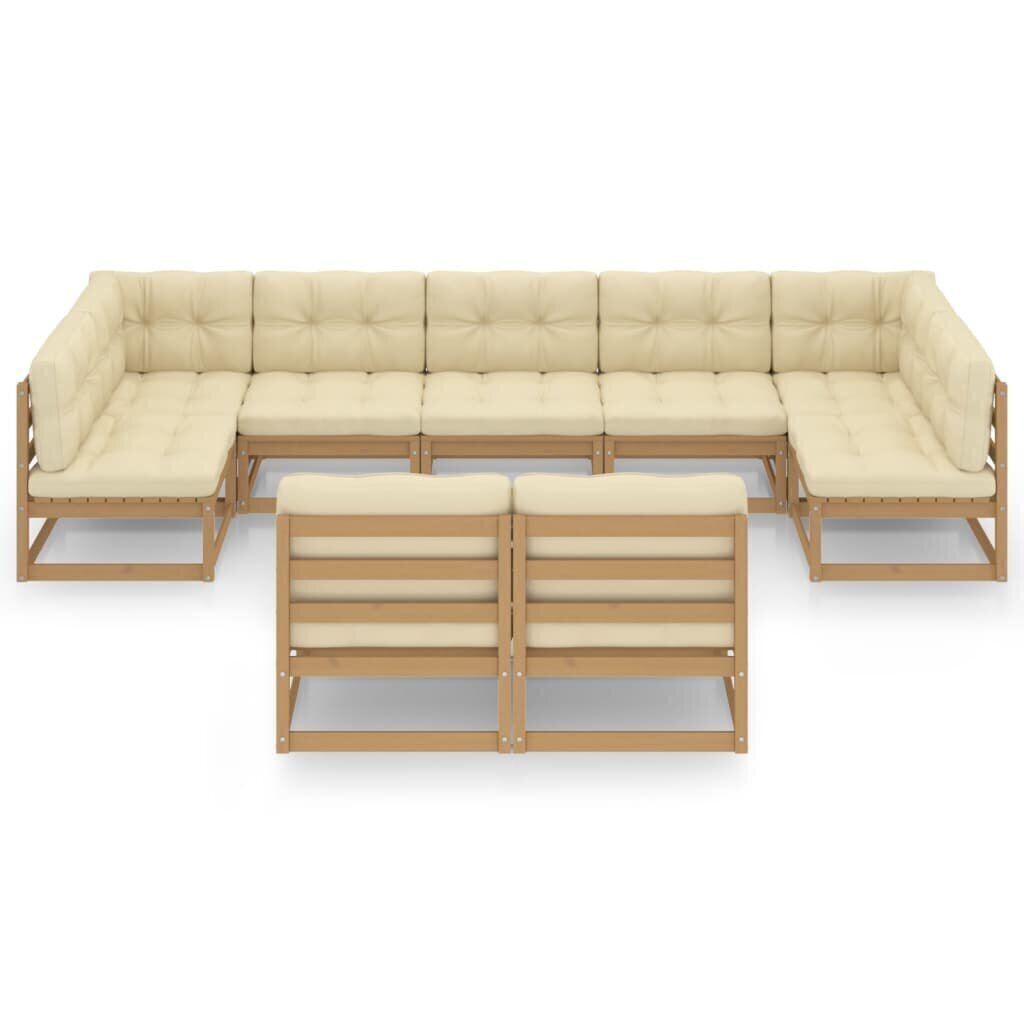 Sodo baldų komplektas su pagalvėlėmis, 9 dalių, rudas Medžio masyvas