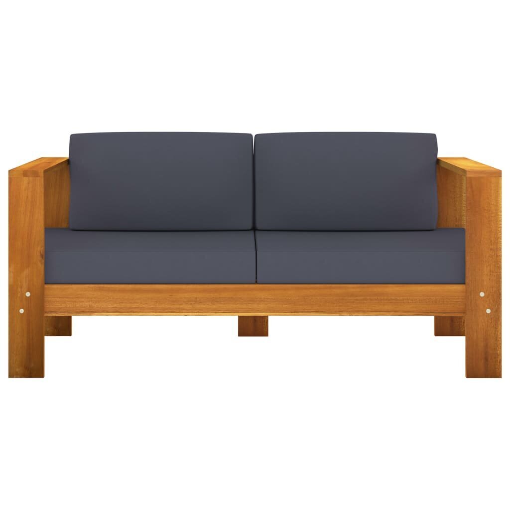 - Medinio sodo poilsio baldų komplekto aprašymas: Šis komplektas pagamintas iš akacijos medienos, užtikrinančios tvirtumą ir ilgaamžiškumą, su paminkštintomis sėdynėmis ir nugaros pagalvėlėmis komfortui.