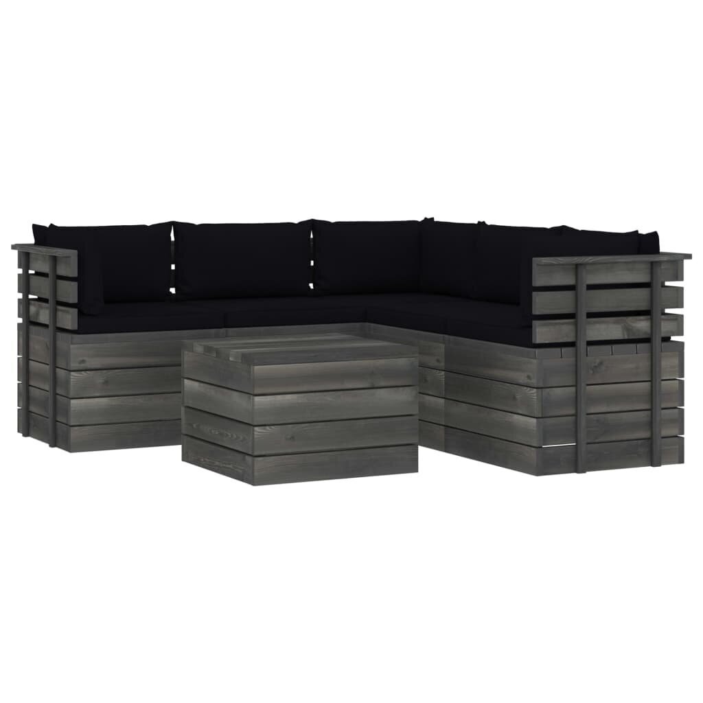 Sodo komplektas iš palečių su pagalvėlėmis, 6 dalių, juodas