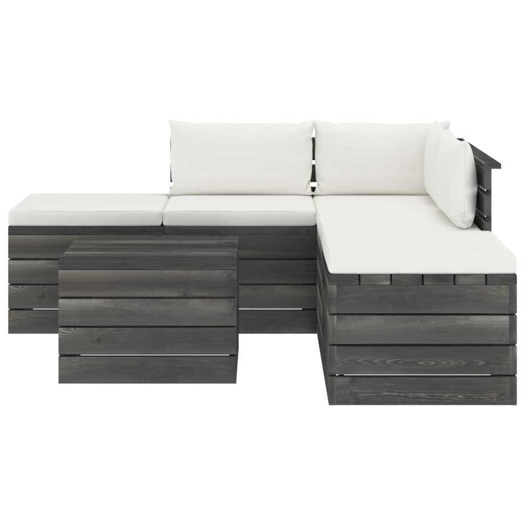 Sodo komplektas iš palečių su pagalvėlėmis, 6 dalių, rudas Medžio masyvas