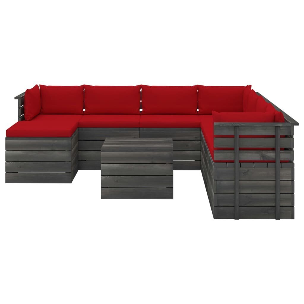 Sodo komplektas iš palečių su pagalvėlėmis, 9 dalių, raudonas Medžio masyvas