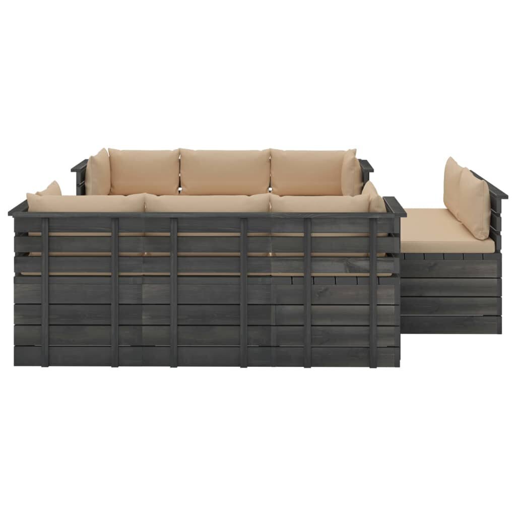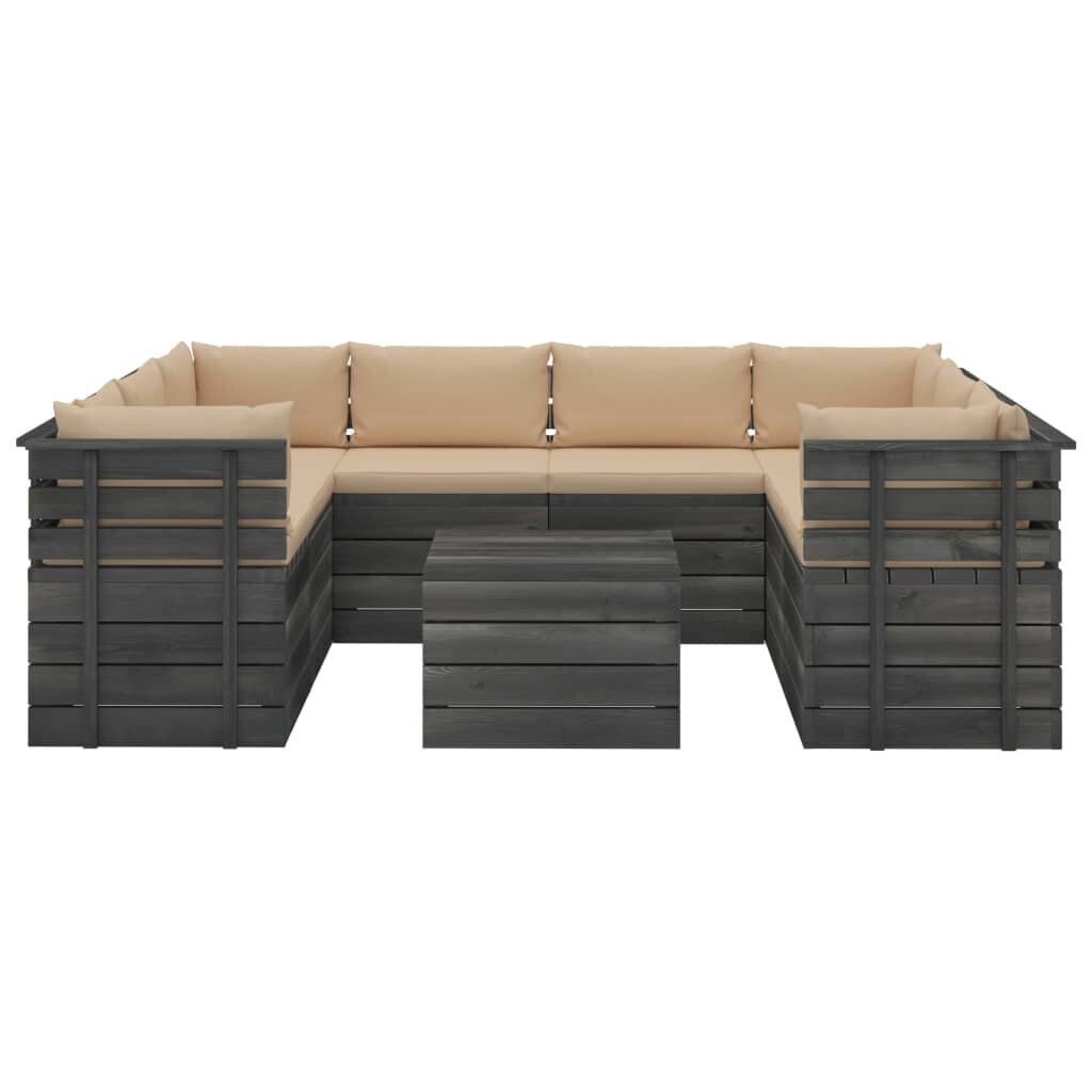 Sodo komplektas iš palečių su pagalvėlėmis, 9 dalių, rudas Medžio masyvas