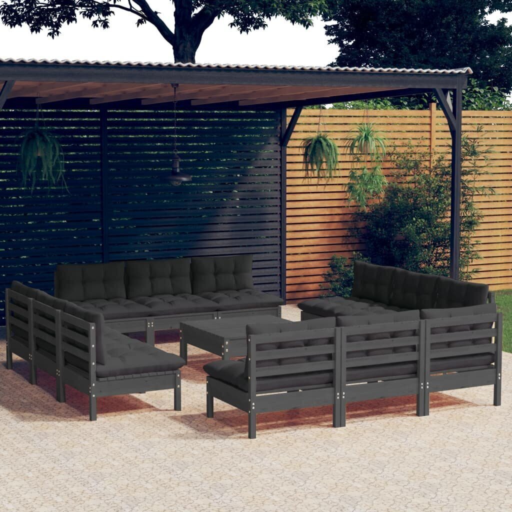 Sodo komplektas su antracito pagalvėlėmis, 13 dalių, pušis Medžio masyvas
