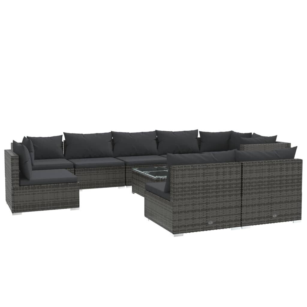 Praktiški baldai yra kompaktiško dydžio, juos lengva perkelti į kitą vietą, o kartais galima ir sulankstyti, taip sutaupant dar daugiau kambario vietos. Dėl šios priežasties pavyksta sukurti šiek tiek minimalistinę, ergonomišką aplinką, kurioje lieka erdvės ir kitiems dizaino sprendimams, ir patogiam praėjimui. Kitaip tariant, Sodo komplektas su pagalvėlėmis, 10 dalių, pilkas lengvai įsilies į puoselėjamą aplinką ir nekliudys įgyvendinti pačius netikėčiausius sprendimus.