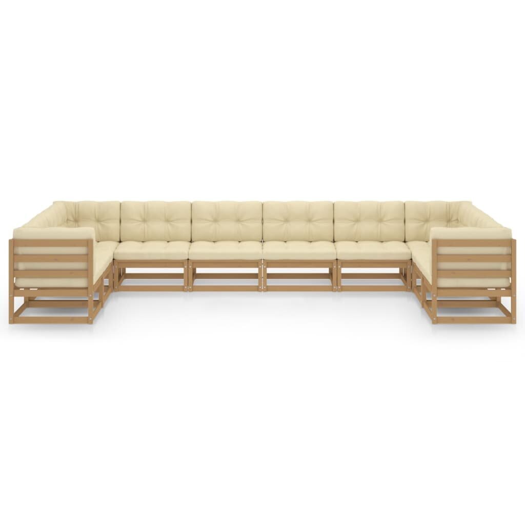 Galima teigti, jog Sodo komplektas su pagalvėlėmis, 10 dalių – nesenstanti klasika, ilgus metus neapleidžianti populiariausių tendencijų sąrašo. Medienos masyvas ypač populiarus šiais laikais, kuomet madingi gamtos motyvai, natūralumas ir ekologiškumas – visas šias savybes turi ir mediniai baldai.