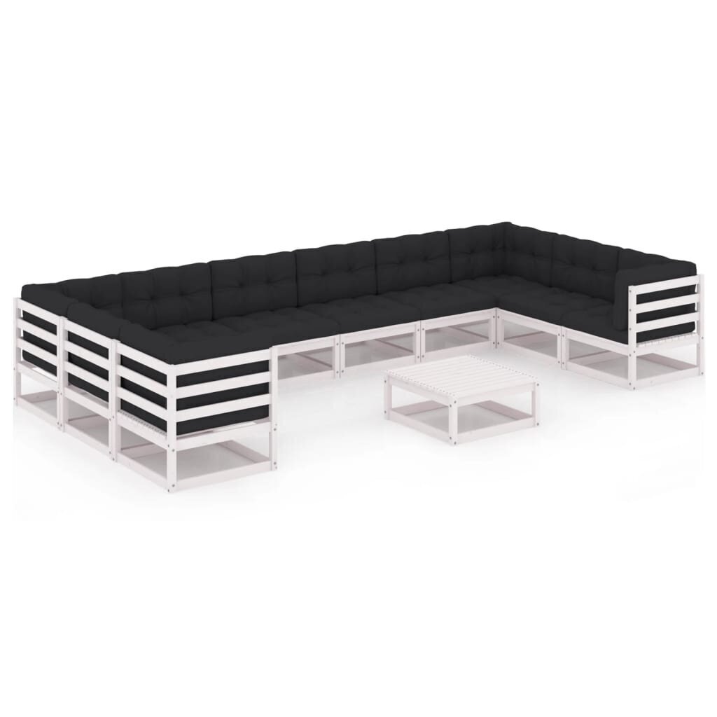 Sodo komplektas su pagalvėlėmis, 11 dalių, baltas Medžio masyvas