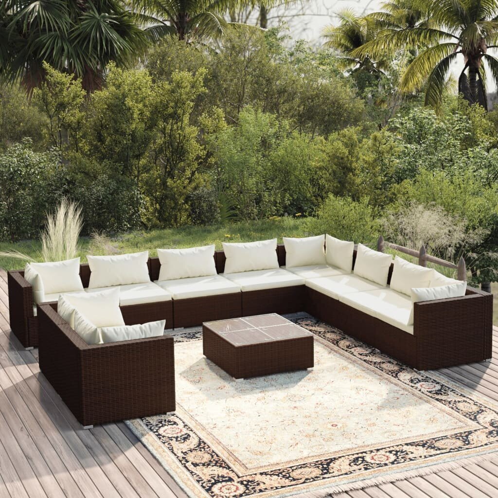 Visi šie modernių baldų bruožai leidžia teigti, jog šio stiliaus gaminiai yra paprasti ir tuo pačiu labai universalūs, todėl juos lengva pritaikyti bet kokio dydžio kambariuose. Sodo komplektas su pagalvėlėmis, 10 dalių, rudas, poliratanas patiks tiems, kurie nori sukurti minimalistinę, neperkrautą erdvę, išlaikant tvarkos ir gaivos įspūdį.