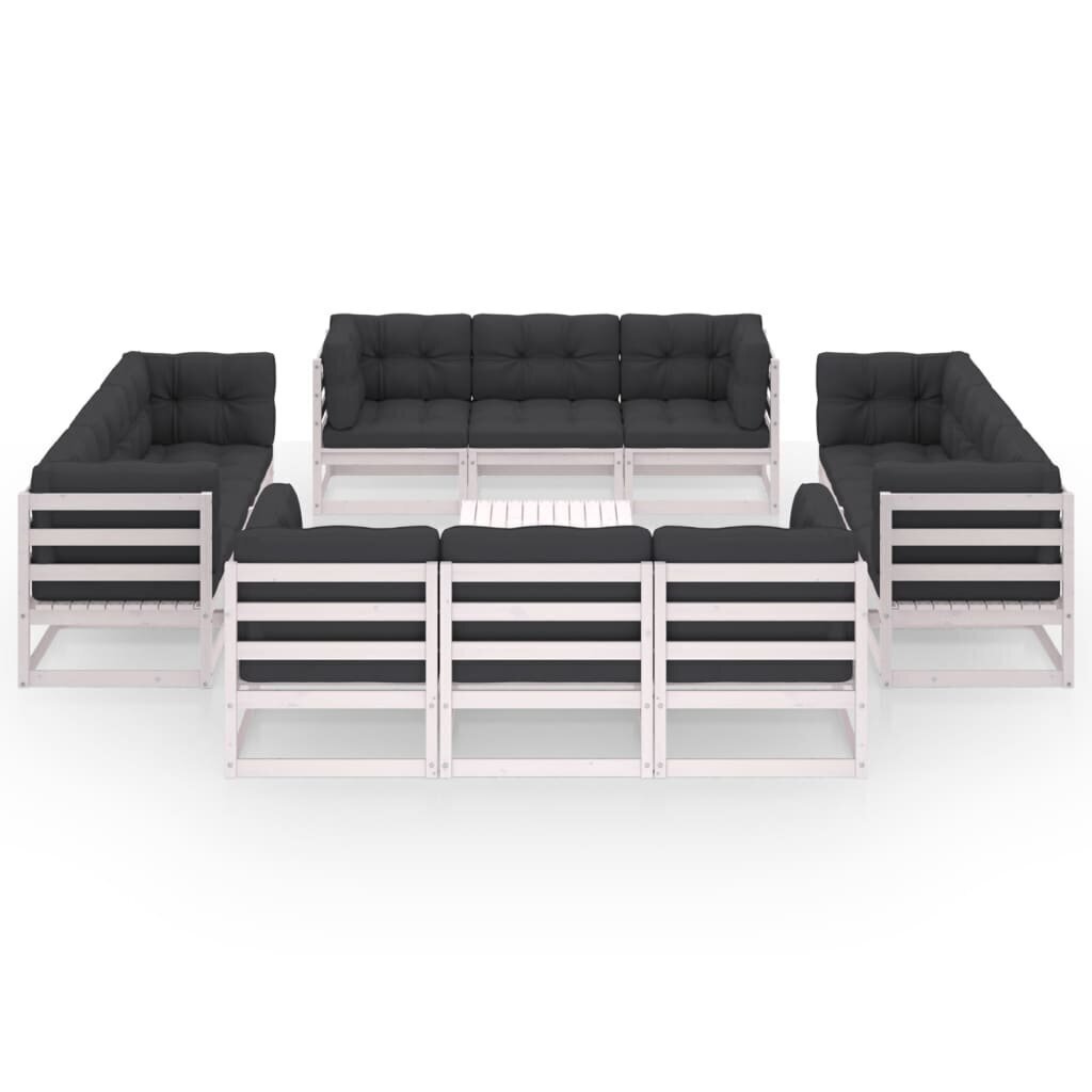 Visi šie modernių baldų bruožai leidžia teigti, jog šio stiliaus gaminiai yra paprasti ir tuo pačiu labai universalūs, todėl juos lengva pritaikyti bet kokio dydžio kambariuose. Sodo komplektas su antracito pagalvėmis, 13 dalių, pušis patiks tiems, kurie nori sukurti minimalistinę, neperkrautą erdvę, išlaikant tvarkos ir gaivos įspūdį.