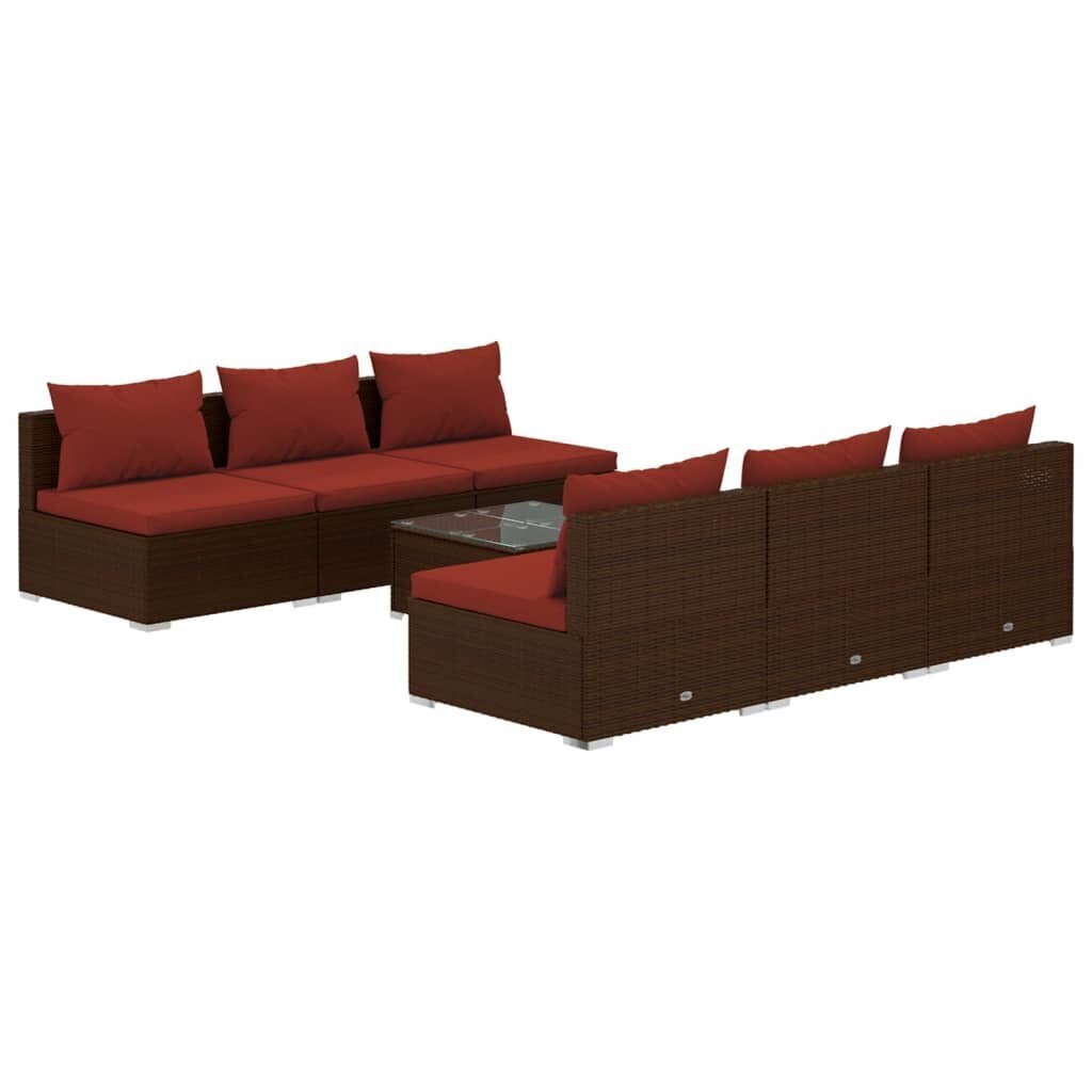 - Lauko baldų komplekto aprašymas: Šis modulinis sodo poilsio baldų rinkinys iš poliratano yra patvarus, vandeniui atsparus, su tvirtu metaliniu rėmu ir patogiomis pagalvėlėmis, skirtas naudoti lauke.