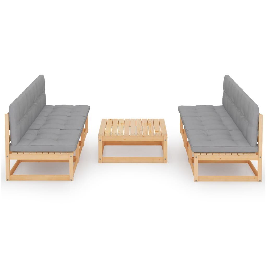 Šis sodo poilsio baldų komplektas yra pagamintas iš tvirtos pušies medienos masyvo, turi papildomas pagalvėles ir gali būti jungiamas su kitomis modulinėmis dalimis, siekiant sukurti individualų poilsio erdvės dizainą.