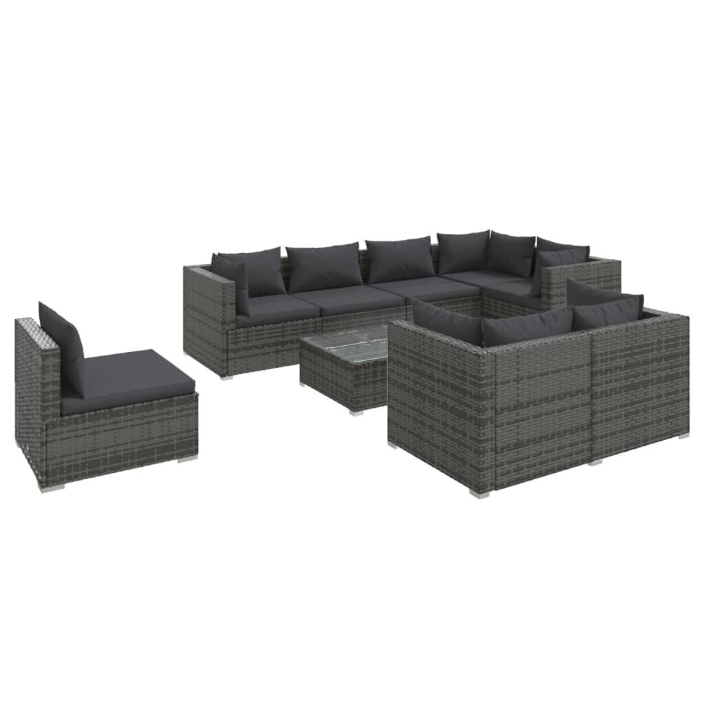 Visi šie modernių baldų bruožai leidžia teigti, jog šio stiliaus gaminiai yra paprasti ir tuo pačiu labai universalūs, todėl juos lengva pritaikyti bet kokio dydžio kambariuose. Sodo komplektas su pagalvėlėmis, 9 dalių, pilkas, poliratanas patiks tiems, kurie nori sukurti minimalistinę, neperkrautą erdvę, išlaikant tvarkos ir gaivos įspūdį.