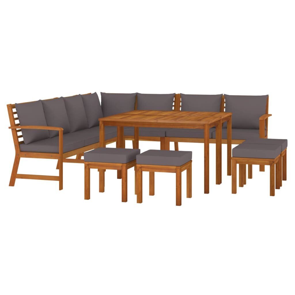 Sodo valgomojo baldų komplektas yra pagamintas iš akacijos medienos, kuri yra tanki, tvirta ir patvari tropinė medžiaga, užtikrinanti ilgaamžiškumą.