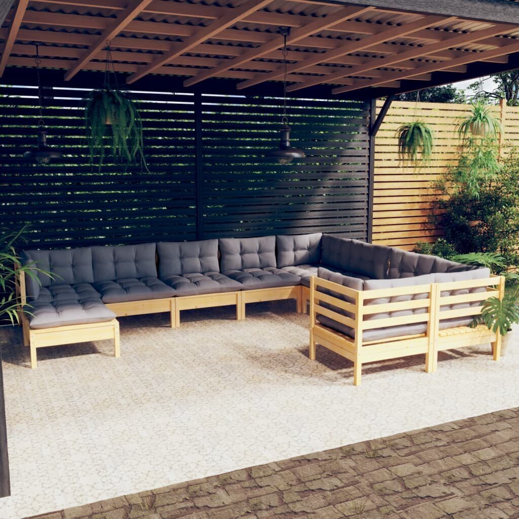 Visi šie modernių baldų bruožai leidžia teigti, jog šio stiliaus gaminiai yra paprasti ir tuo pačiu labai universalūs, todėl juos lengva pritaikyti bet kokio dydžio kambariuose. Sodo komplektas su pilkomis pagalvėmis, 11 dalių, pušis patiks tiems, kurie nori sukurti minimalistinę, neperkrautą erdvę, išlaikant tvarkos ir gaivos įspūdį.