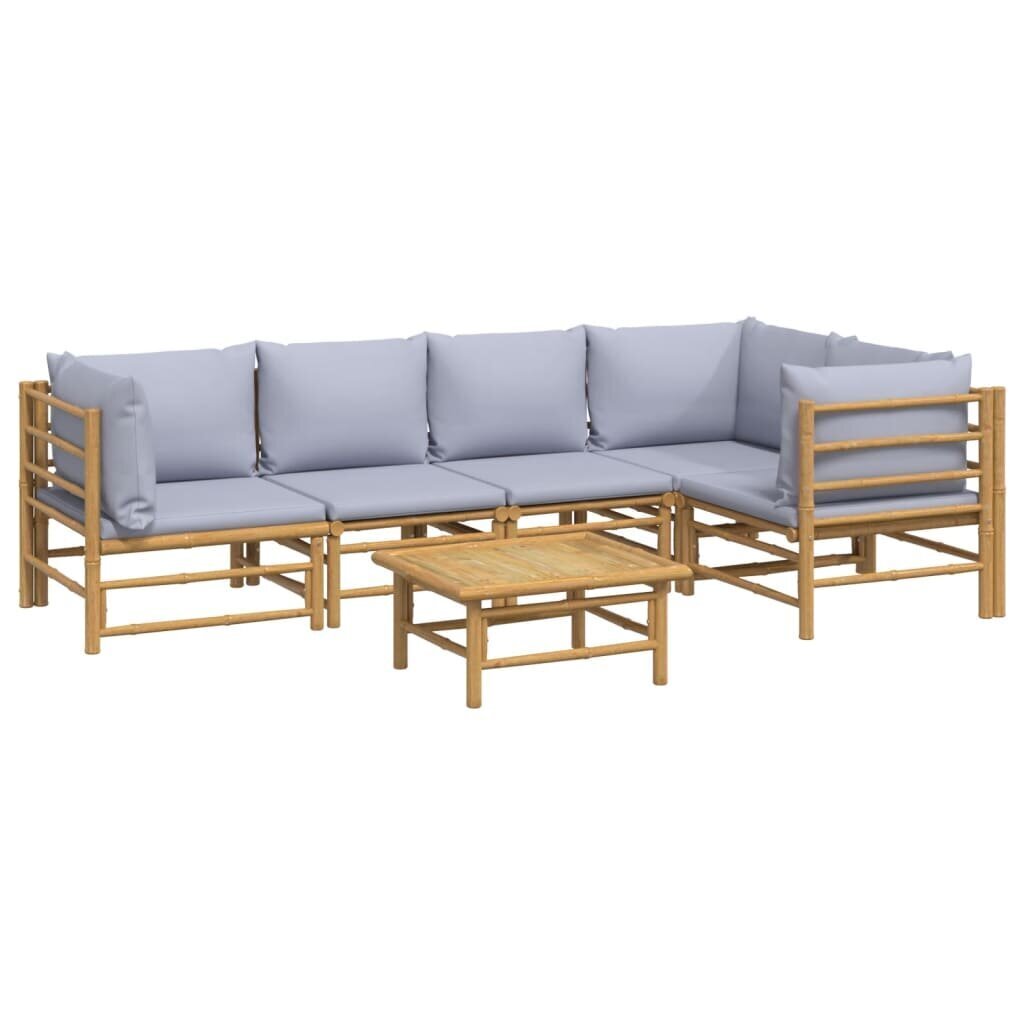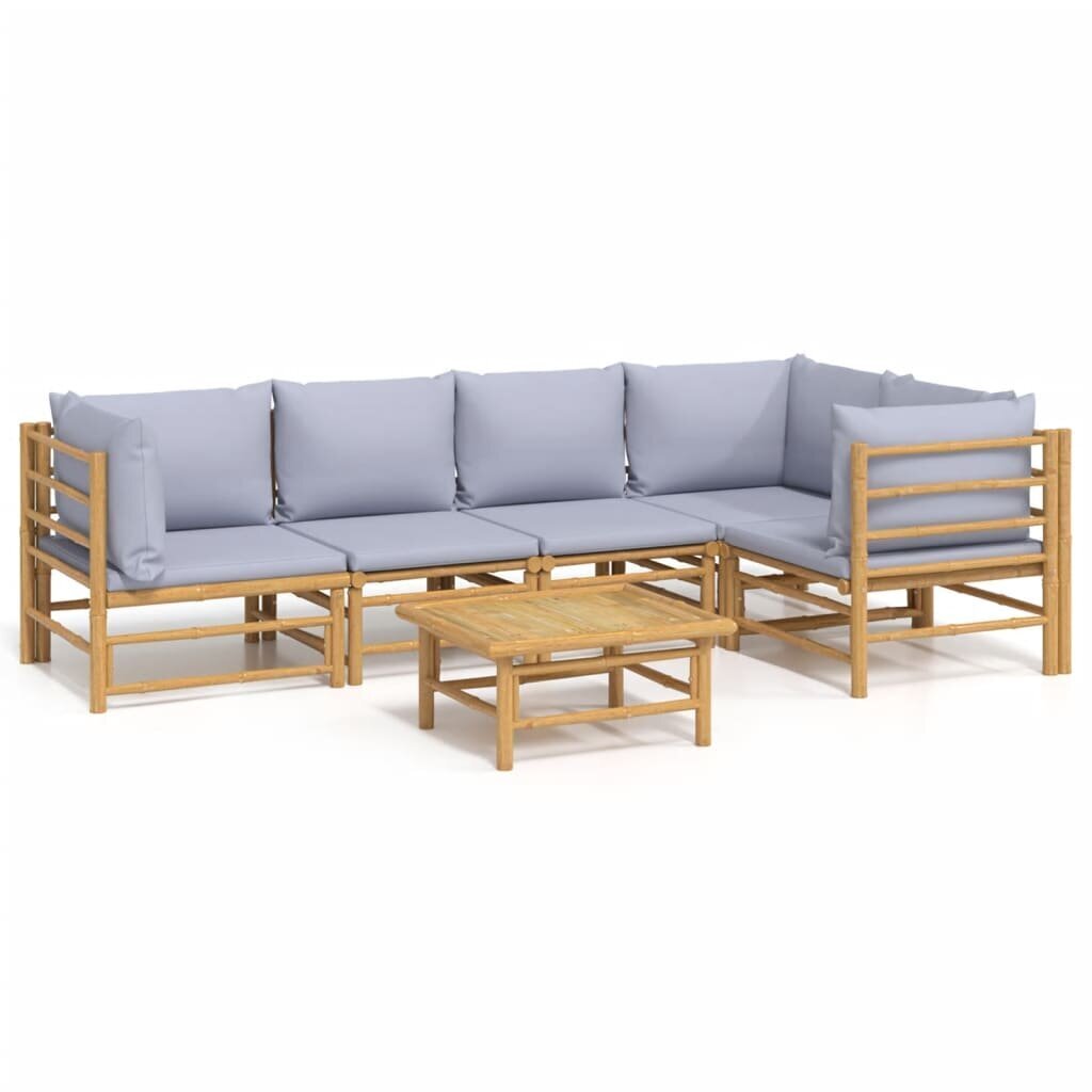 Sodo poilsio baldų komplektas pagamintas iš natūralaus bambuko, kuris pasižymi lankstumu ir kietumu, užtikrinančiu baldų patvarumą ir natūralų išvaizdą.