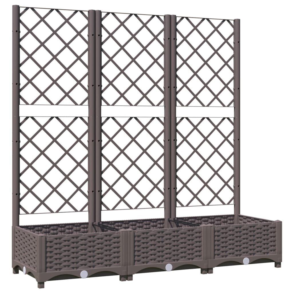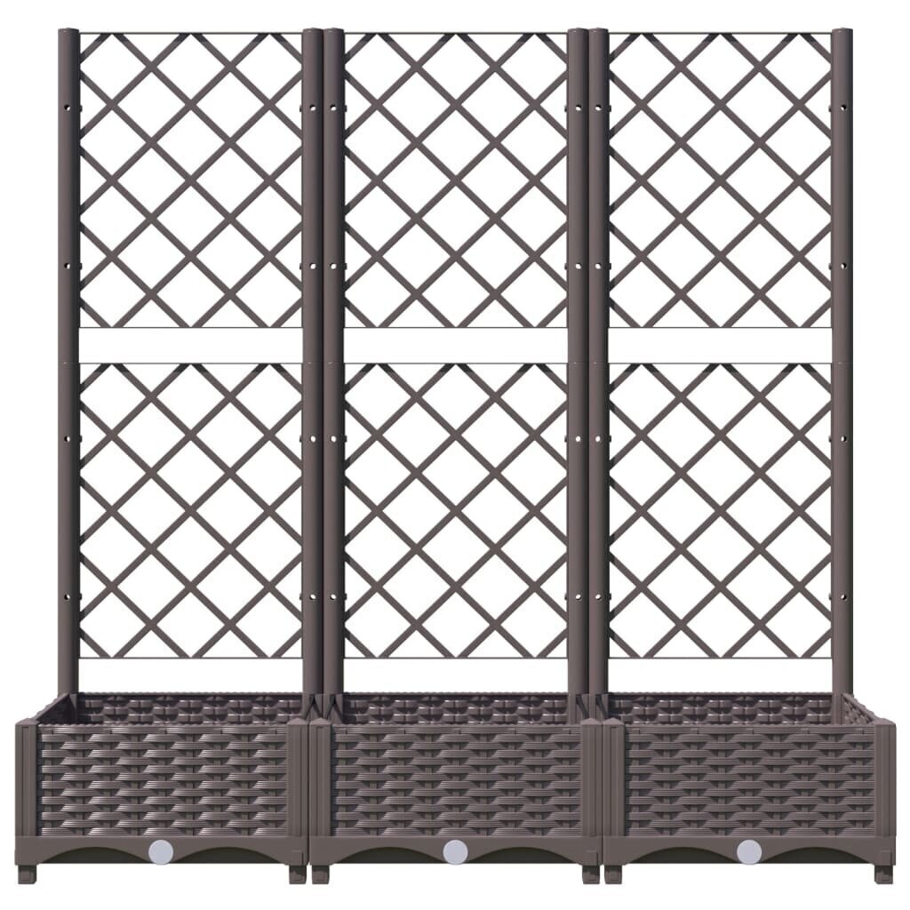 - Sodo lovelis su treliažu ir įėjimu: Šis lauko sodo lovelis pagamintas iš atsparaus polipropileno, turi įmontuotą treliažą ir talpią dėžę žolelėms bei gėlėms, leidžiantį kurti įvairias augalų kompozicijas.