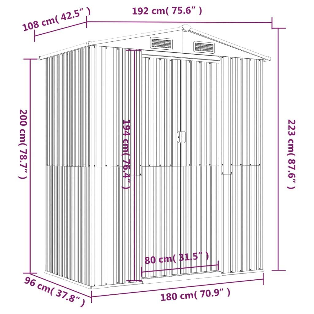 Sodo įrankių namelis yra pagamintas iš galvanizuoto plieno, kuris užtikrina, kad jis nesurūdys ir tarnaus daugybę metų, suteikiant ilgalaikę apsaugą nuo nepalankių oro sąlygų.