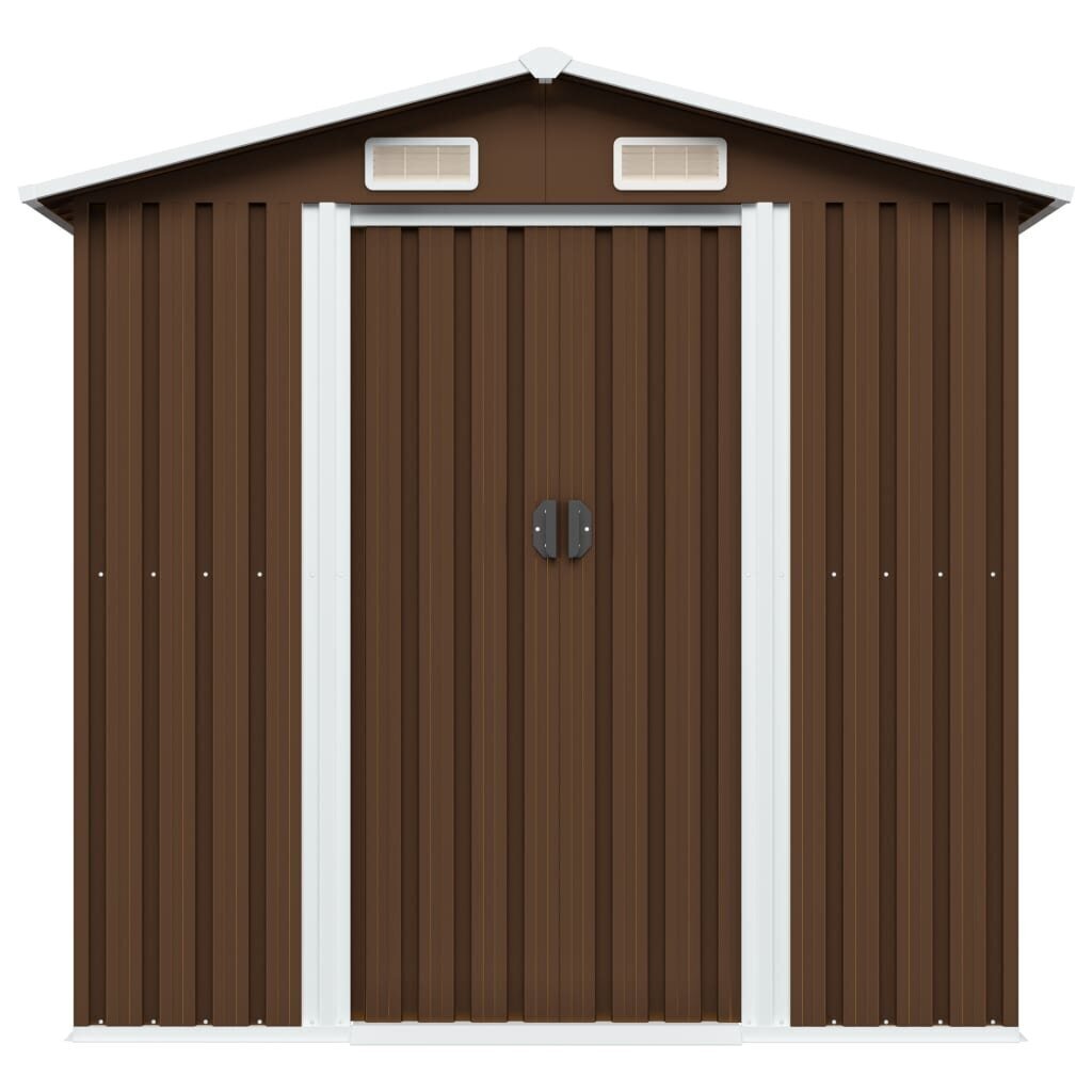 Šis metalinis sandėliukas pasižymi patikimumu, ilgaamžiškumu, geru vėdinimu ir ventiliacinėmis angomis, kurios pašalina drėgmę ir kvapus, taip pat yra atsparus korozijai.