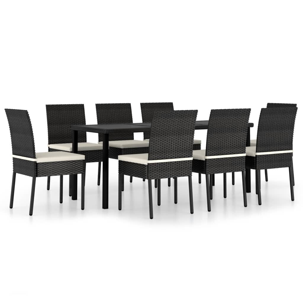 - Sodo valgomojo baldų komplekto dizainas ir medžiagos: Šis išskirtinio dizaino sodo baldų komplektas pasižymi plieno rėmu ir PE ratanu, kuris yra atsparus oro sąlygoms, lengvai valomas ir patvarus.
