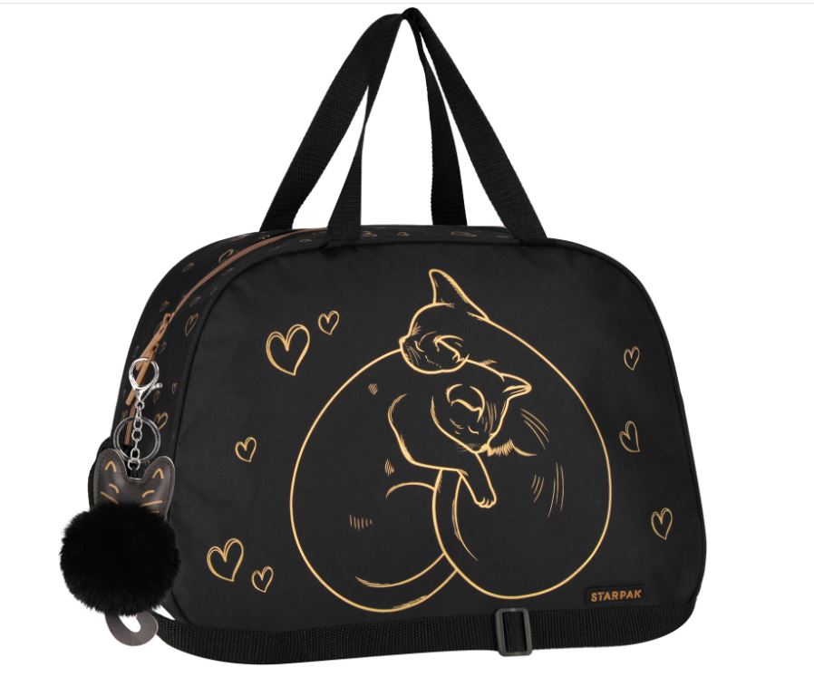 Ši sportinė tašė mergaitėms – puikus pasirinkimas mokyklai, kūno kultūros pamokoms, baseinui ar sporto būreliams. Stilingas juodos spalvos dizainas su mielais kačiukais ir auksinės spalvos širdelės detale patiks kiekvienai mergaitei, o tėvams suteiks ramybę dėl praktiškumo ir kokybės.
