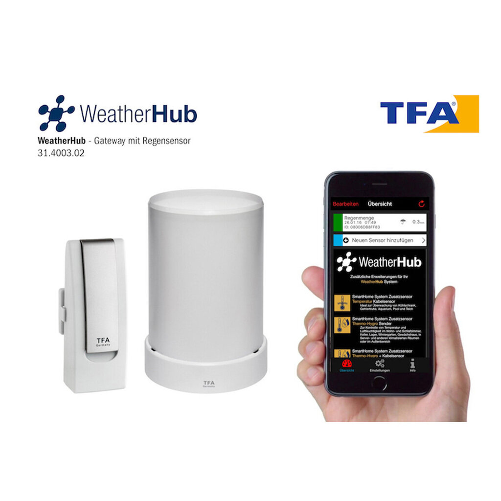 - Mobilus klimato stebėjimas naudojant WEATHERHUB SmartHome sistemą: Naudodami savo išmanųjį telefoną galite lengvai valdyti ir stebėti temperatūrą, orą bei kitus sąlygų parametrus namuose ir sode, bet kurioje vietoje.