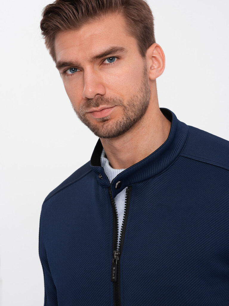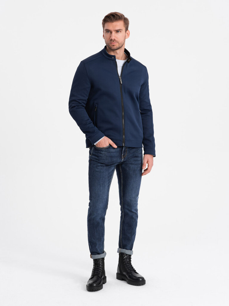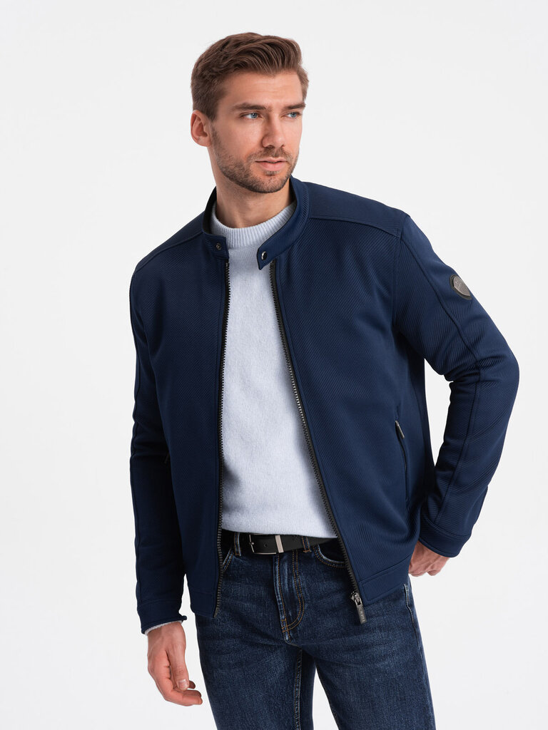 - Vyriška baikerių striukė: Ši vyriška baikerių striukė pasižymi užsegimu užtrauktuku ir įdomia išorinės medžiagos tekstūra, leidžianti sukurti stilingą įvaizdį.