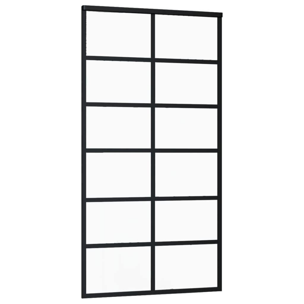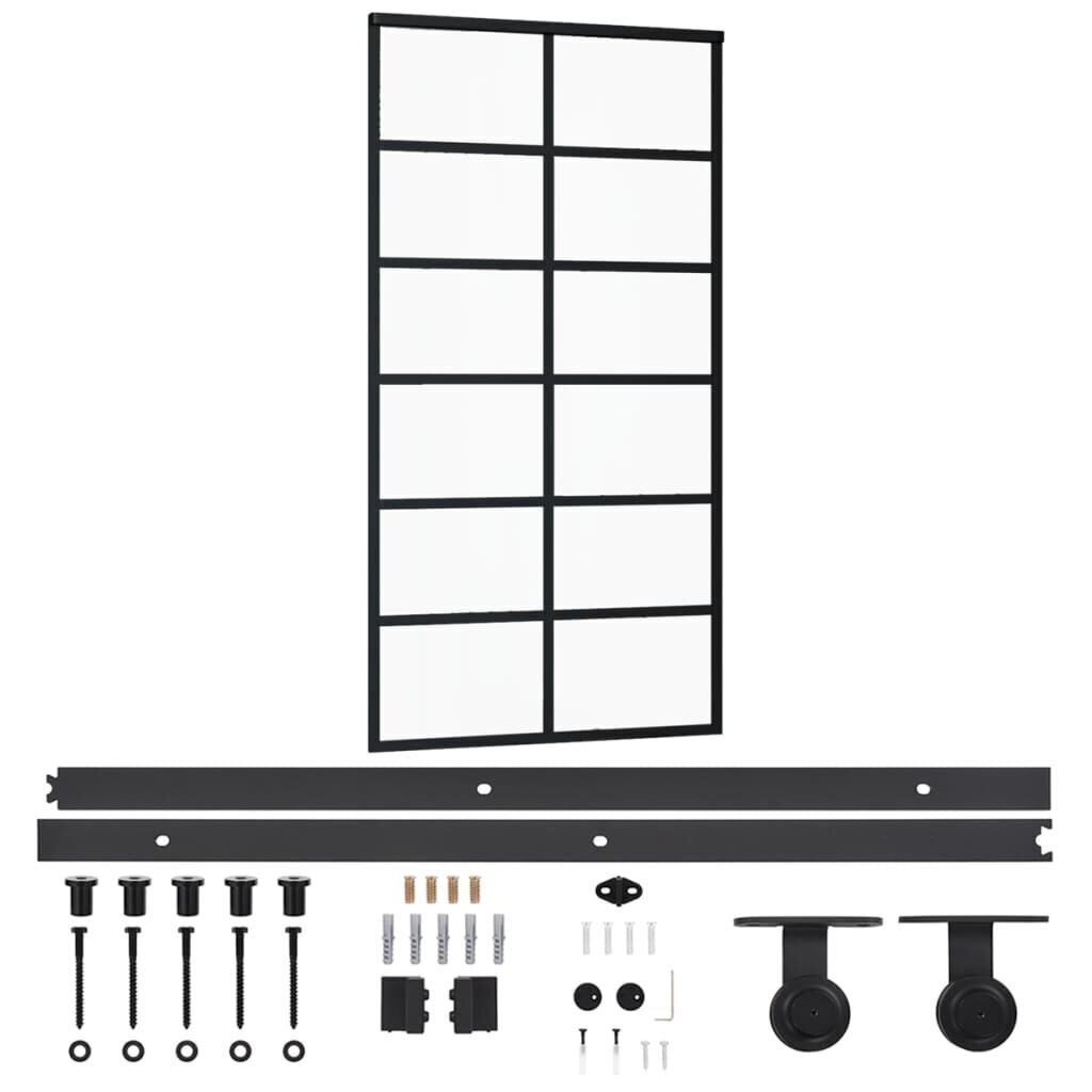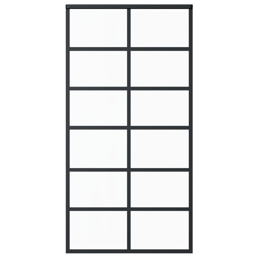 Šios stumdomos durys pagamintos iš ESG (vieno sluoksnio apsauginio stiklo) su juodu raštu ir aliuminio rėmo.