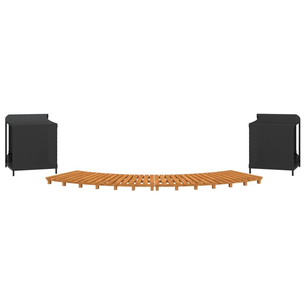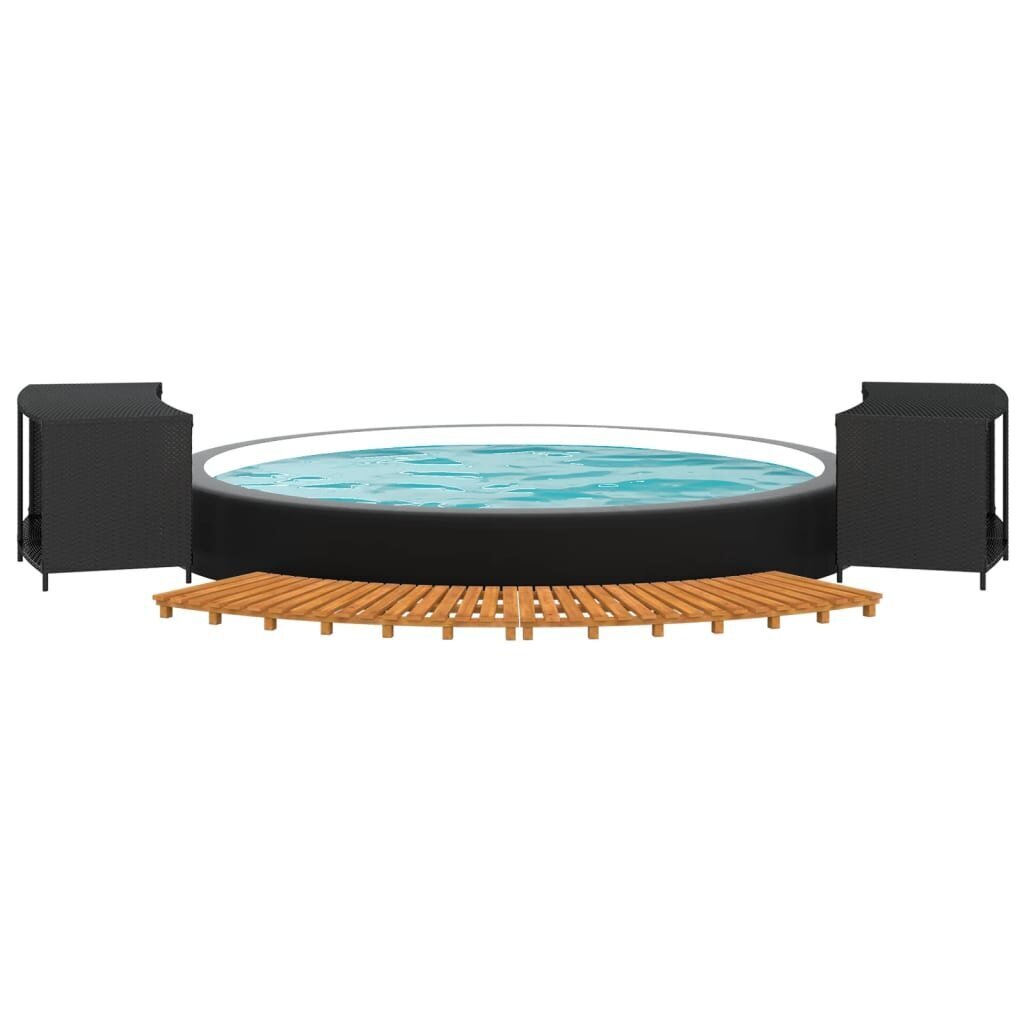 Su šiuo stilingu sūkurinės vonios rėmu jūs ir jūsų svečiai galės pasimėgauti dar malonesniais spa potyriais. Patvari medžiaga: PE ratanas, taip pat žinomas, kaip poliratanas, yra atsparus įvairioms oro sąlygoms ir lengvai valomas. Jis išlieka gražus netgi laikant jį ilgesnį laiką lauke. Jis kur kas ekonomiškesnis nei kitos medžiagos bei pasižymi puikia kokybe, patogumu ir estetiška išvaizda.Stabilus rėmas: lentynos daiktams rėmas yra pagamintas iš milteliniu būdu dengto plieno. Plienas – išskirtinai kieta ir tvirta medžiaga. Jis suteikia tvirtumo ir stabilumo. Milteliniu būdu dengta plieno danga sukuria apsauginį sluoksnį nuo nusidėvėjimo ir įtrūkimų.Akacijos medienos masyvas: sūkurinės vonios laiptelis yra pagamintas iš akacijos medienos masyvo. Akacijos mediena – tankus, tvirtas ir patvarus tropinis kietmedis.Vieta daiktams: suteikiantis vietos daiktams, kubilo apvadas leis tvarkingai bei lengvai pasiekiamus laikyti visus reikiamus daiktus.