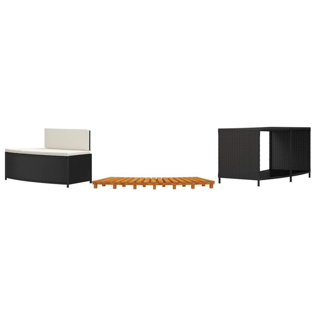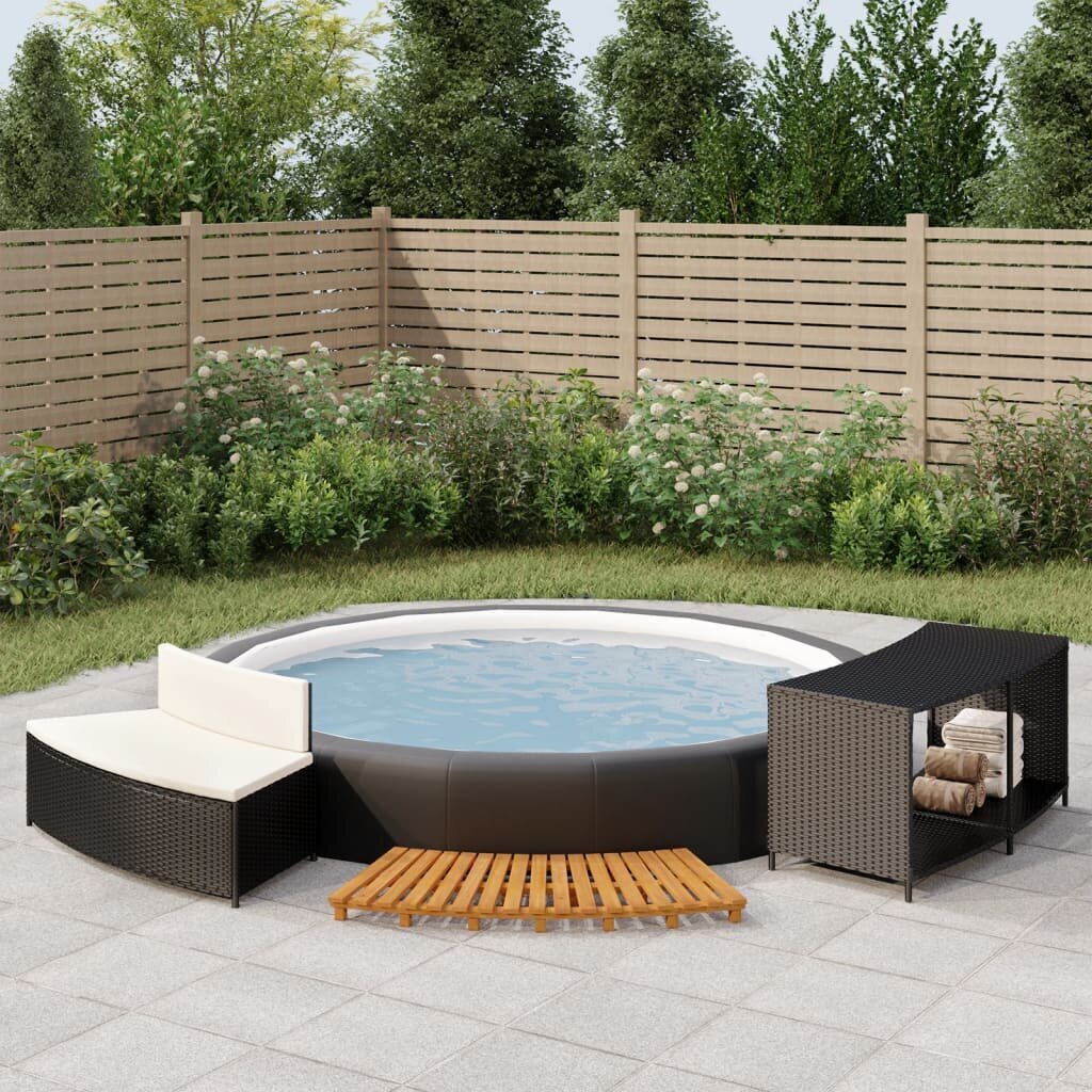 Su šiuo stilingu sūkurinės vonios rėmu jūs ir jūsų svečiai galės pasimėgauti dar malonesniais spa potyriais. Patvari medžiaga: PE ratanas, taip pat žinomas, kaip poliratanas, yra atsparus įvairioms oro sąlygoms ir lengvai valomas. Jis išlieka gražus netgi laikant jį ilgesnį laiką lauke. Jis kur kas ekonomiškesnis nei kitos medžiagos bei pasižymi puikia kokybe, patogumu ir estetiška išvaizda.Stabilus rėmas: suoliuko ir lentynos daiktams rėmai yra pagaminti iš milteliniu būdu dengto plieno. Plienas – išskirtinai kieta ir tvirta medžiaga. Jis suteikia tvirtumo ir stabilumo. Milteliniu būdu dengta plieno danga sukuria apsauginį sluoksnį nuo nusidėvėjimo ir įtrūkimų.Akacijos medienos masyvas: sūkurinės vonios laiptelis yra pagamintas iš akacijos medienos masyvo. Akacijos medienos masyvas – graži natūrali medžiaga. Akacijos mediena – tankus, tvirtas ir patvarus tropinis kietmedis.Patogus: siekiant užtikrinti didžiausią komfortą ilsintis, kubilo rėmas turi sūkurinės vonios suoliuką su pagalvėlėmis.Vieta daiktams: suteikiantis vietos daiktams, kubilo apvadas leis tvarkingai bei lengvai pasiekiamus laikyti visus reikiamus daiktus.