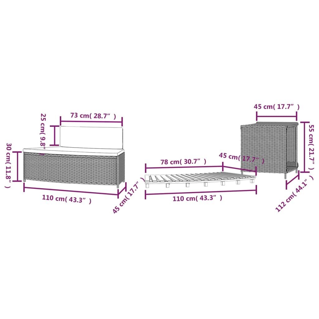 • Suoliuko matmenys: 73/110 x 45 x 55 cm (ilgis x plotis x aukštis)