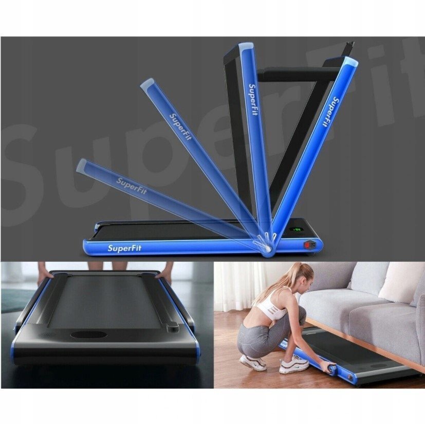 - Sulankstomas elektrinis bėgimo takelis: Šis bėgimo takelis yra skirtas viso kūno kardio treniruotėms ir gali būti sulankstomas, siekiant patogesnio laikymo ir pernešimo.