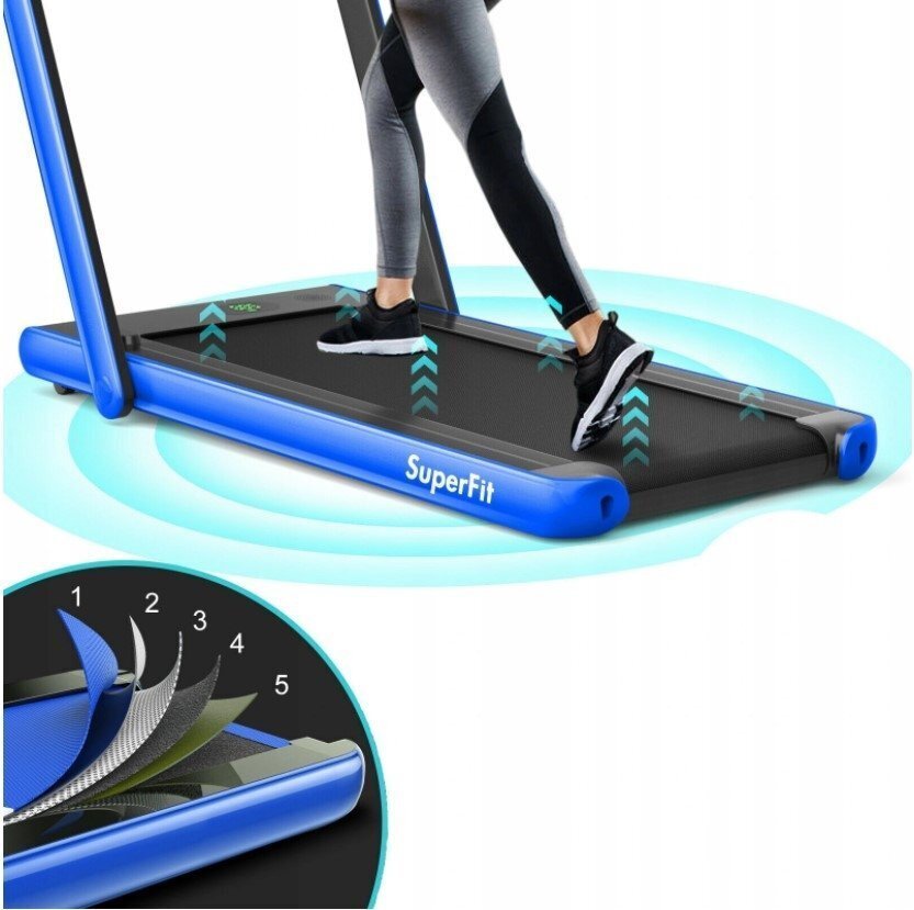 Šis bėgimo takelis turi du treniruočių režimus, švelnią ir tyliai veikiančią variklį, Bluetooth garsiakalbį ir ekraną, kuris leidžia sekti pažangą. Jis yra lengvai perkeliamas, sulankstomas ir pagamintas iš aukštos kokybės medžiagų, užtikrinančių ilgaamžiškumą.