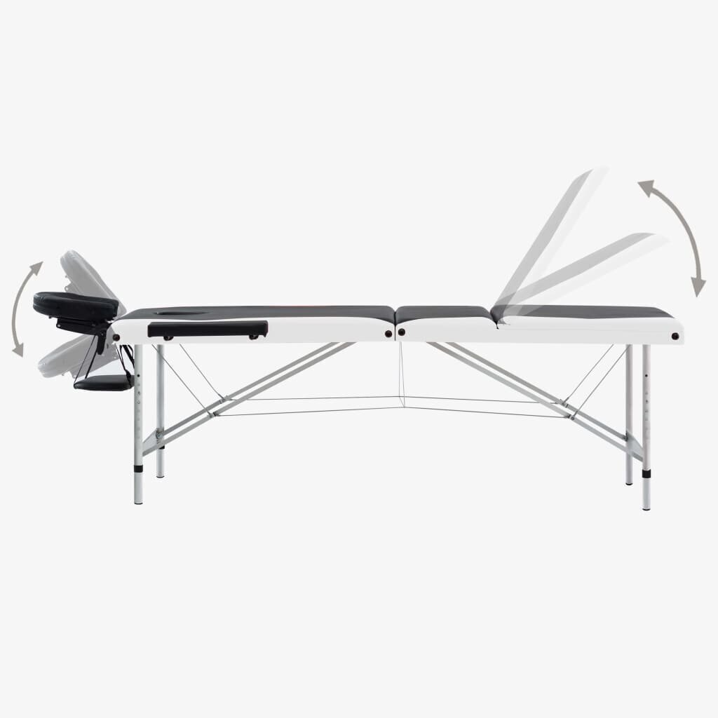 Šis aliuminio rėmu pasižymintis 3 zonų sulankstomas masažinis stalas puikiai tinka tiek mėgėjams, tiek profesionalams. Šio terapijoms skirto stalo storu porolono sluoksniu paminkštinta pagalvėlė yra itin patogi ir atspari dezinfekuojančioms priemonėms ir masažo aliejui. Atrama galvai, porankiai ir stalo aukštis yra reguliuojami, taip užtikrinant, kad naudotojas galės patogiai atsigulti, o masažuotojas pasirinkti norimą darbinį aukštį. Stalas yra nešiojamas, o siekiant užtikrinti paprastą transportavimą ir laikymą, pridedamas nešimui skirtas krepšys. Šį masažinį stalą lengva surinkti.