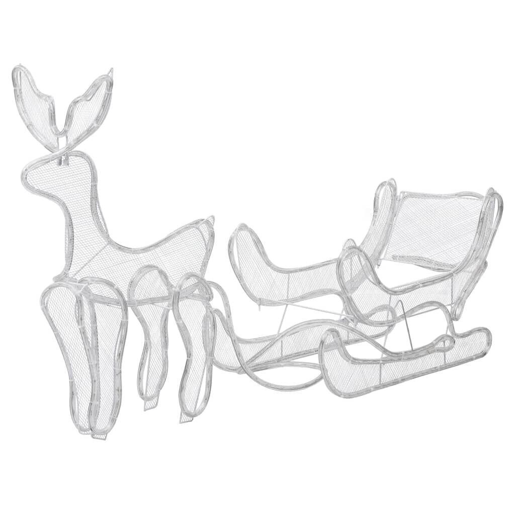 - Kalėdinė dekoracija su LED lempučių ekspozicija: Ši elegantiška šviečianti dekoracija iš PVC ir plieno su elnio ir rogių formomis tinka tiek vidaus, tiek lauko apšvietimui, prideda žavesio ir šventiškumo Kalėdoms.