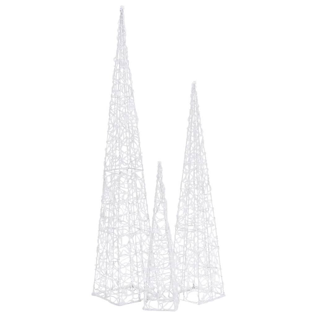 Šios kalėdinės LED dekoracijos rinkinyje yra trys šviečiantys kūgiai, kurie skirti sukurti jaukią ir šventišką atmosferą tiek viduje, tiek lauke, ir jų aukštis yra 60, 90 bei 120 cm.