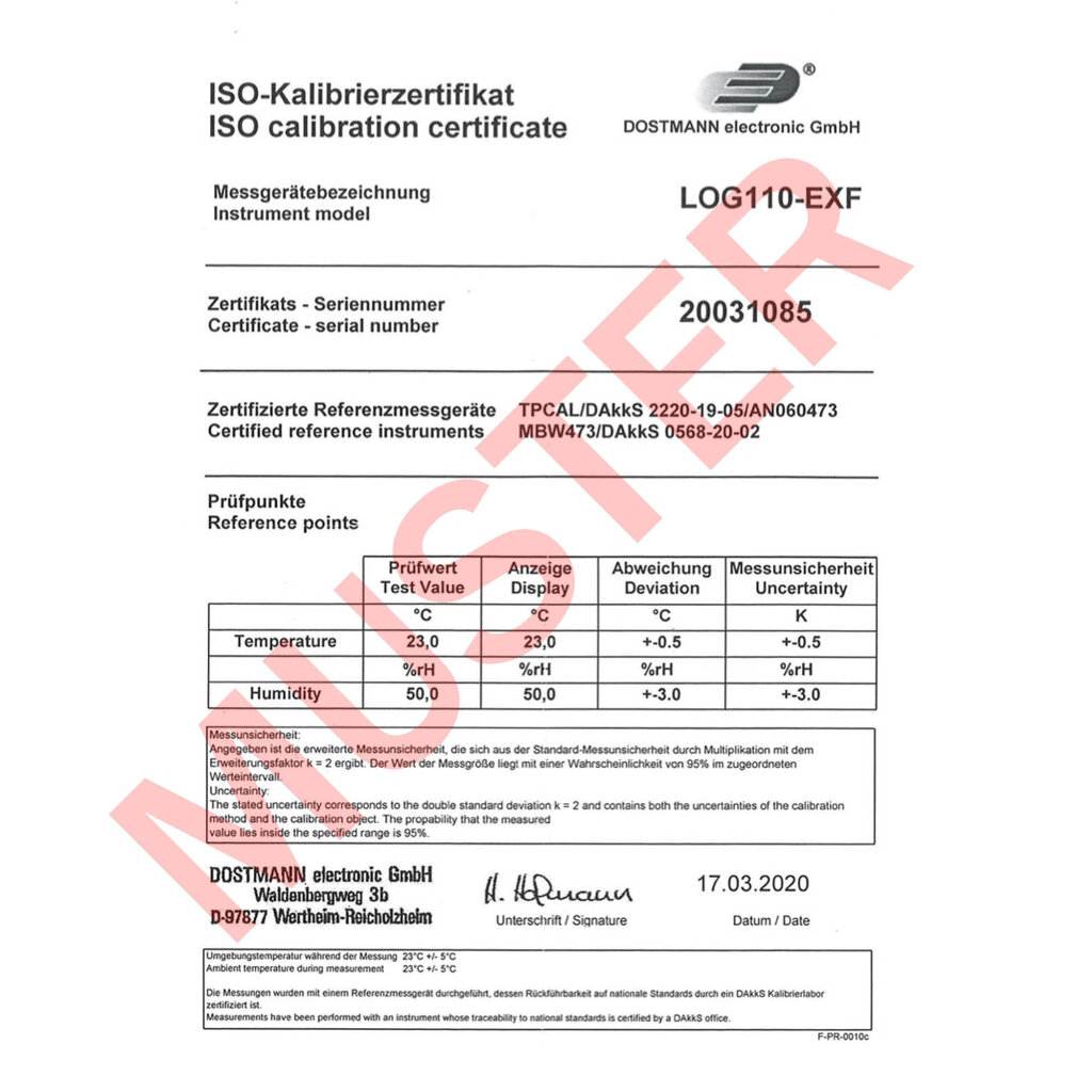 • Su ISO sertifikatu; atskaitos taškai: 23°C, 50% rH