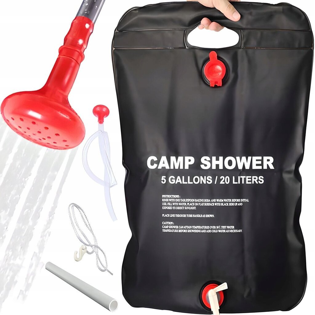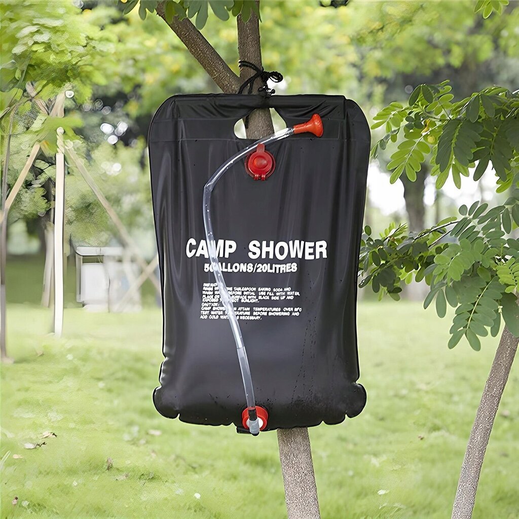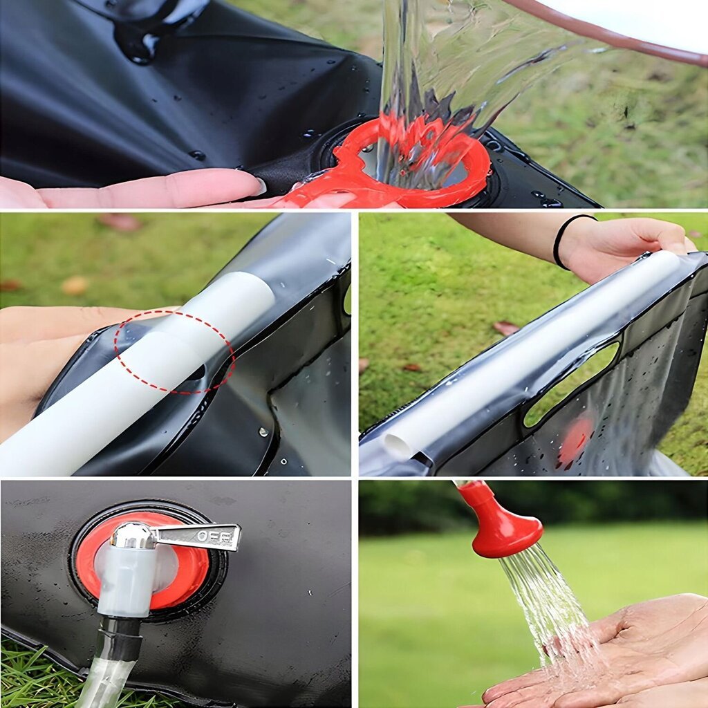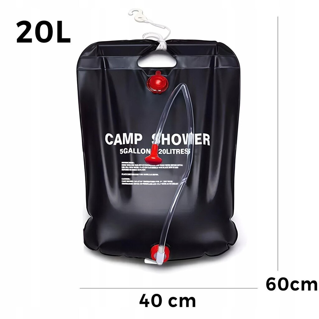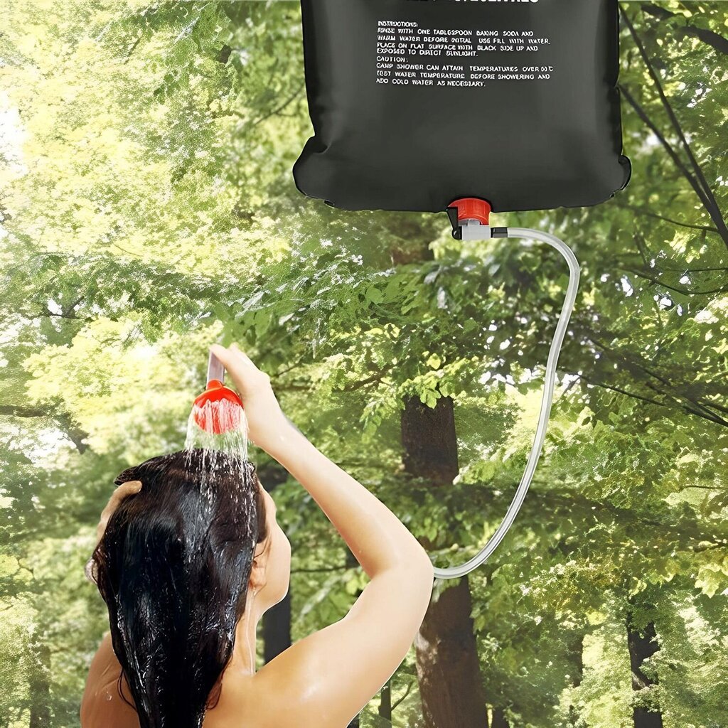 - Saulės/kempingo dušo funkcionalumas: Šis dušas yra idealus sprendimas žmonėms, leidžiantis nusiprausti arba paruošti indus stovyklavietėse ir kelionėse, naudojant saulės šilumą vandeniui įkaitinti iki 50 °C.