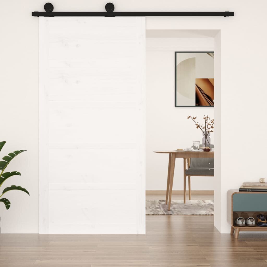 Stabilus rėmas: medinis vidaus durų rėmas suteikia tvirtumo ir stabilumo. Daug vietos neužimantis dizainas: šios stumdomos durys neužims daug vietos ir suteiks erdvumo. Tai puikus pasirinkimas, norint sukurti paprastą ir erdvų, modernų namų dizainą.