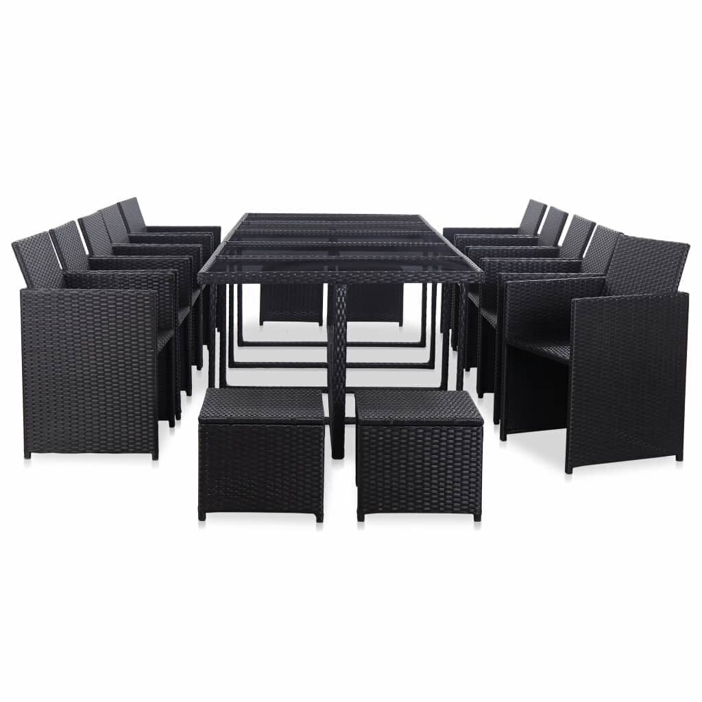 Valgomojo komplektas su pagalvėmis, 15 dalių, juodas
