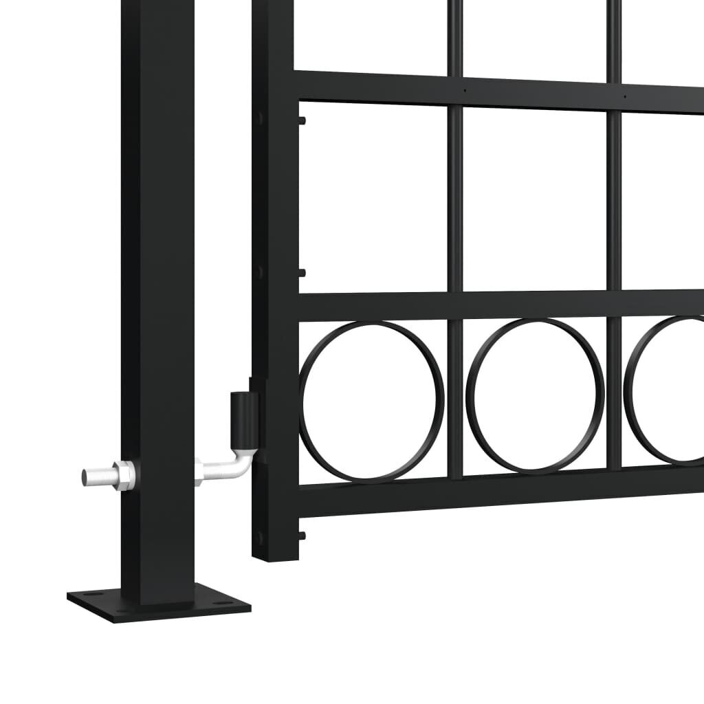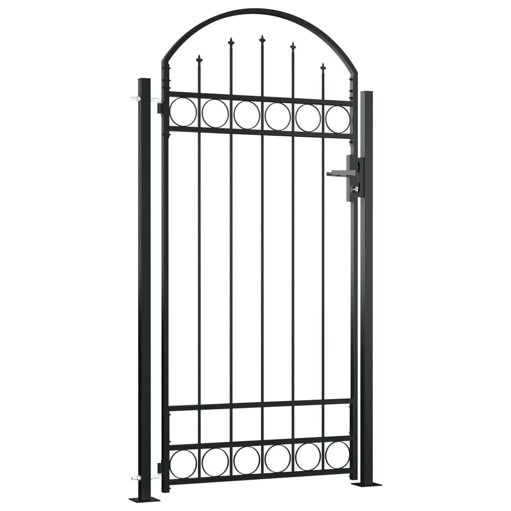 Šie vartai- modernaus stiliaus praktiškas įėjimas atskiriantis jūsų sodą nuo pašalinių. Ypatingai stabilūs ir patvarūs vartai bus praktiška sodo, kiemo ar terasos pertvara. Su savo stilingu, išlenktu viršaus dizainu ir stipriais horizontaliais ramsčiais sustiprinančiais rėmą, mūsų sodo vartai vienu metu ir apsaugos ir bus nuostabus įėjimas į teritoriją. Pagaminti iš aukštos kokybės plieno, vartai yra dengti milteliniu būdu, todėl yra apsaugoti nuo rūdžių ir korozijos. Šie vartai yra pristatomi kartu su patvariais vyriais skirtais greitam įrengimui ir patikima rakinimo sistema su trijų raktų komplektu. Šie sodo vartai yra puikus stiliaus, patvarumo, stabilumo ir atsparumo rūdims derinys!