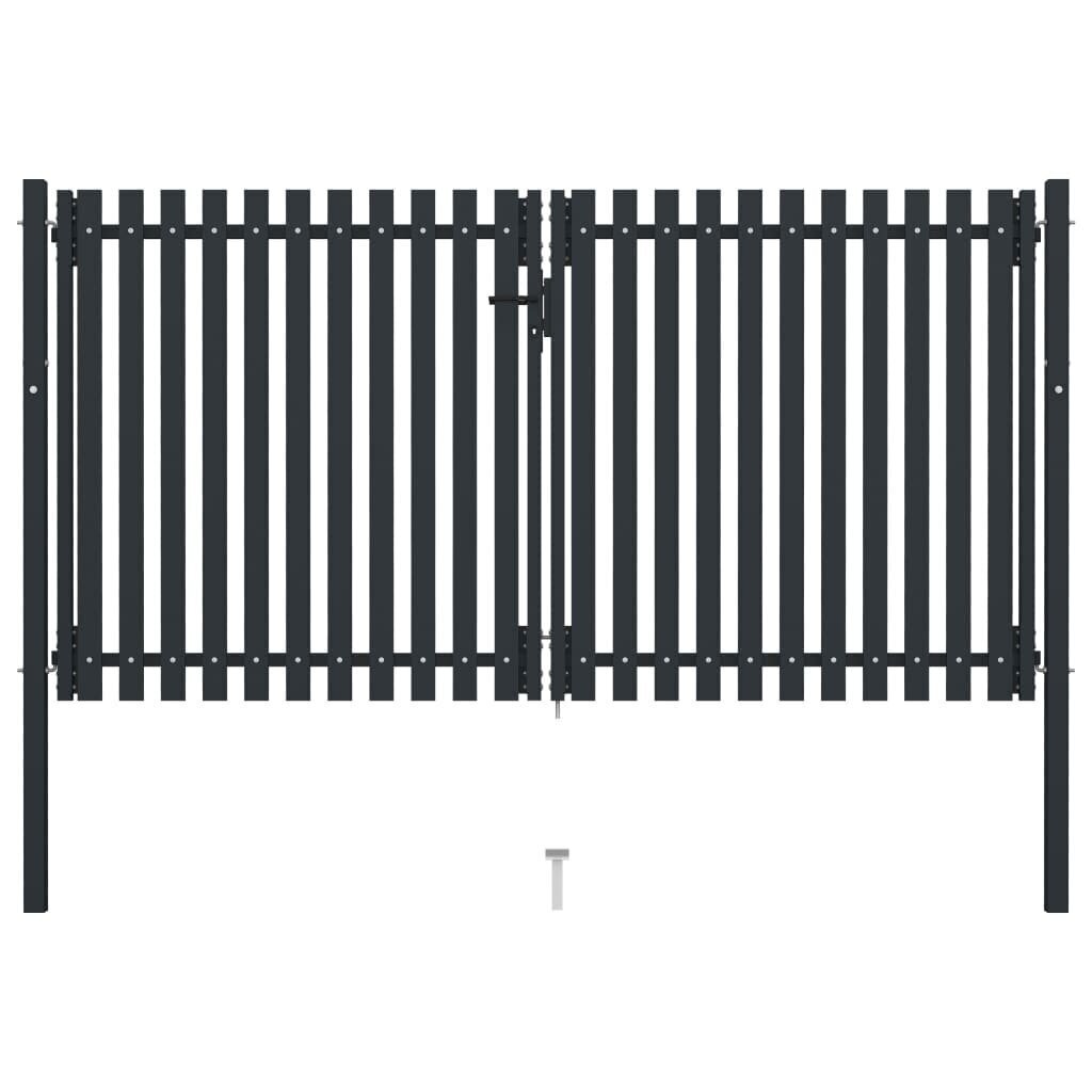 Šie dvigubi vartai pagaminti iš milteliniu būdu dengto plieno, kuris garantuoja nepaprastą tvirtumą ir ilgaamžiškumą.