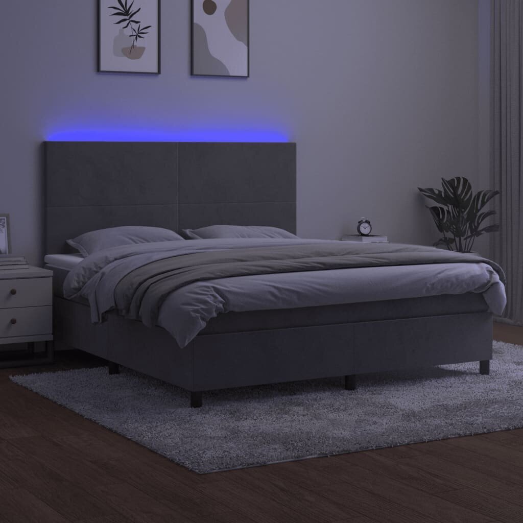 Kokios produktyvios savybės turi vidaXL lova su spyruoklėmis, čiužiniu ir LED apšvietimu?