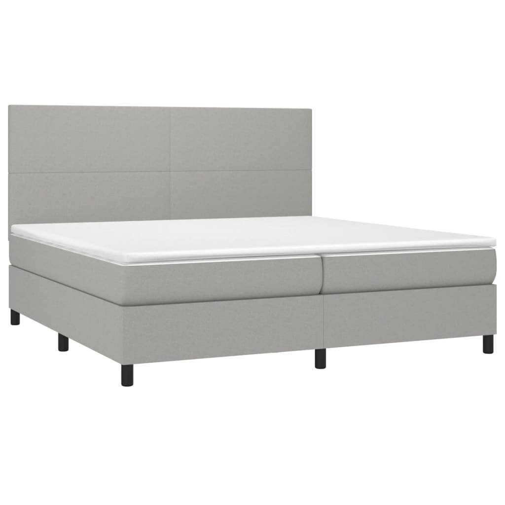 vidaXL Lova su spyruoklėmis/čiužiniu/LED, pilka, 200×200 cm, audinys