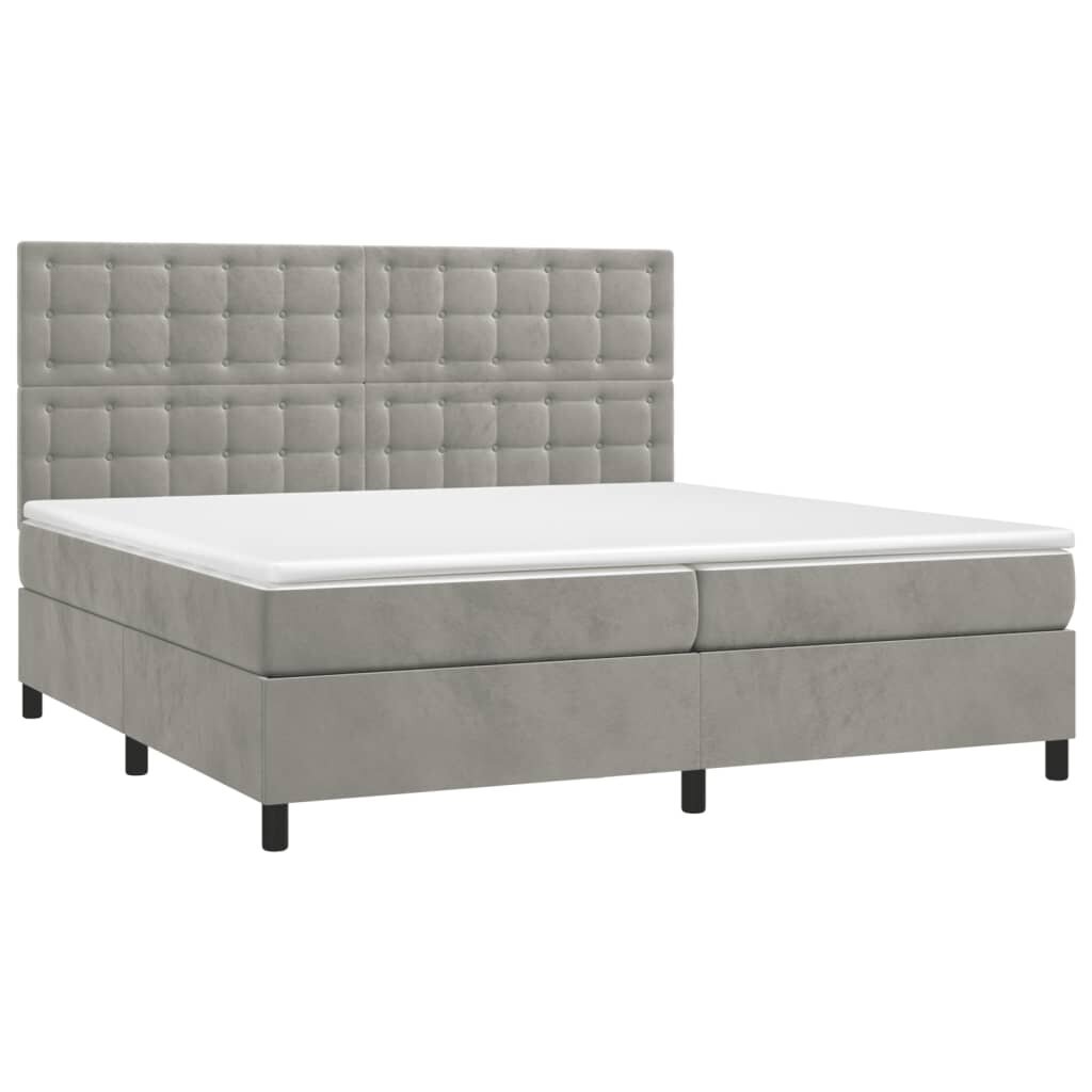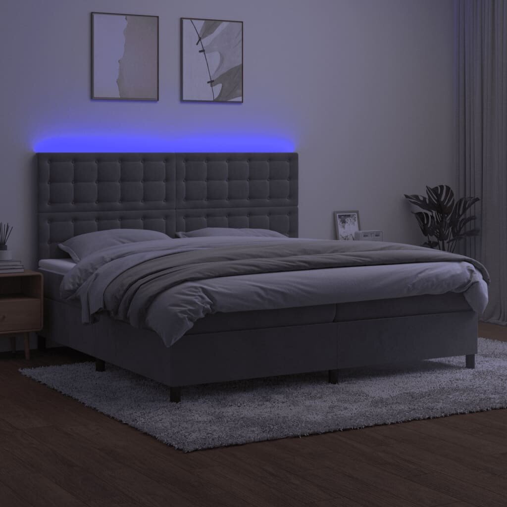 vidaXL Lova su spyruoklėmis/čiužiniu/LED, pilka, 200x200cm, aksomas