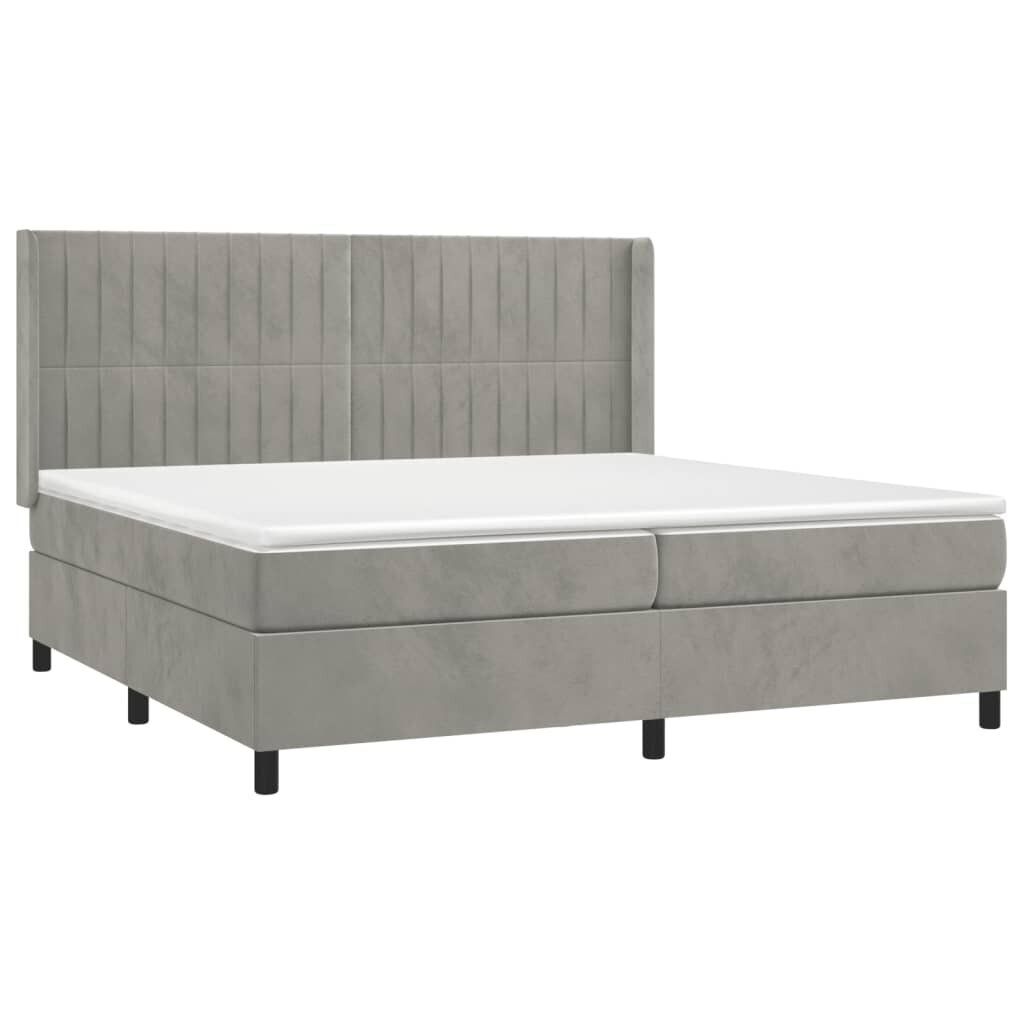 Visi šie modernių baldų bruožai leidžia teigti, jog šio stiliaus gaminiai yra paprasti ir tuo pačiu labai universalūs, todėl juos lengva pritaikyti bet kokio dydžio kambariuose. vidaXL Lova su spyruoklėmis/čiužiniu/LED, pilka, 200x200cm, aksomas patiks tiems, kurie nori sukurti minimalistinę, neperkrautą erdvę, išlaikant tvarkos ir gaivos įspūdį.