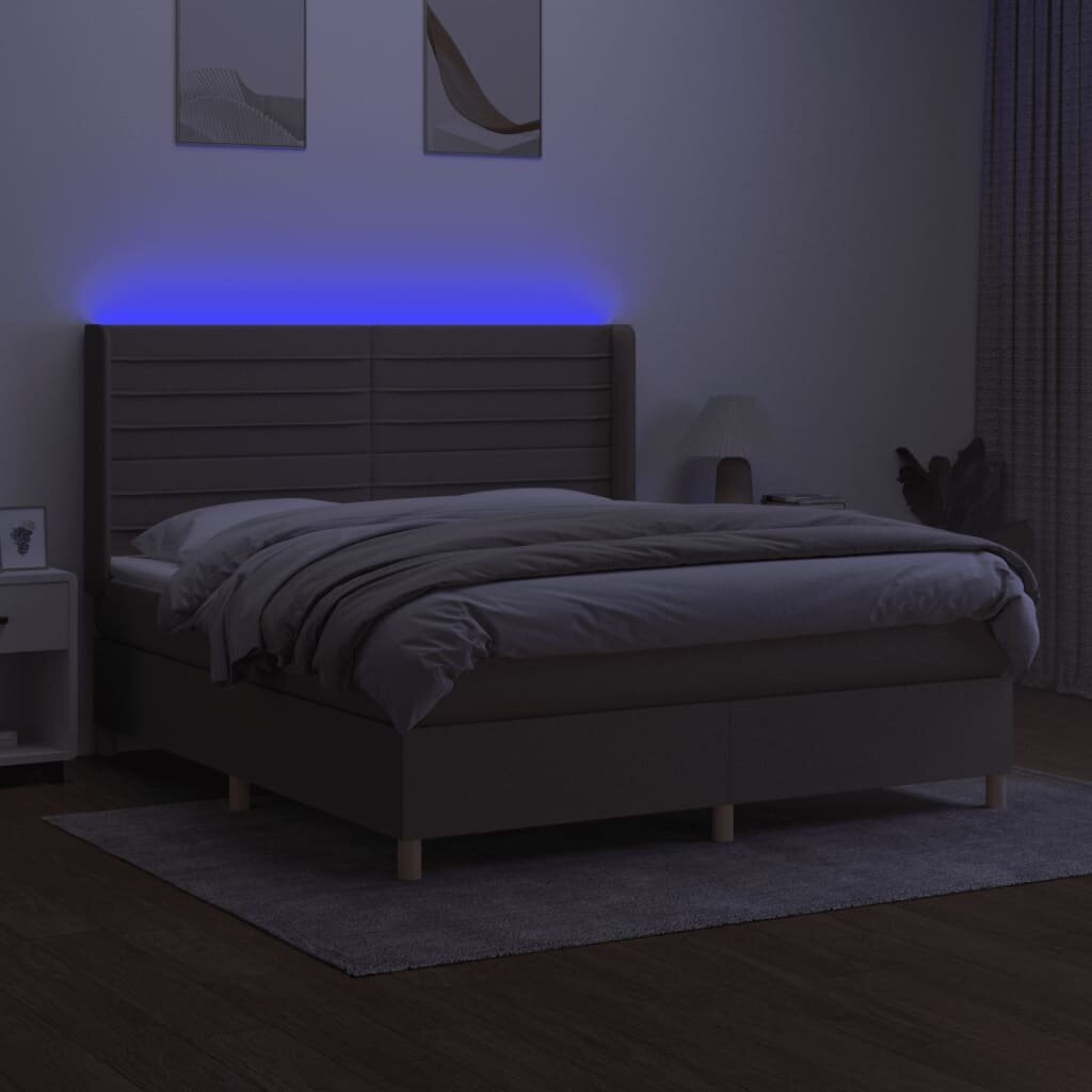 Visi šie modernių baldų bruožai leidžia teigti, jog šio stiliaus gaminiai yra paprasti ir tuo pačiu labai universalūs, todėl juos lengva pritaikyti bet kokio dydžio kambariuose. vidaXL Lova su spyruoklėmis/čiužiniu/LED, taupe, 160×200 cm, audinys patiks tiems, kurie nori sukurti minimalistinę, neperkrautą erdvę, išlaikant tvarkos ir gaivos įspūdį.